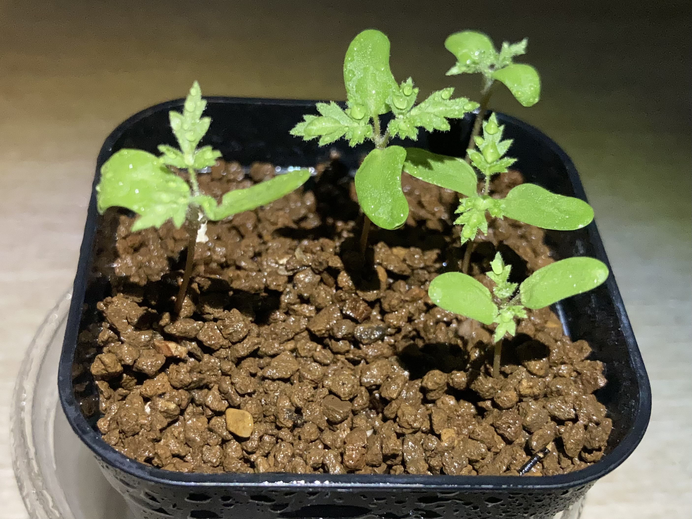 2025/9/28播種 2025/10/16撮影15粒播種、8株管理中メネデール+ベンレートに日中浸...