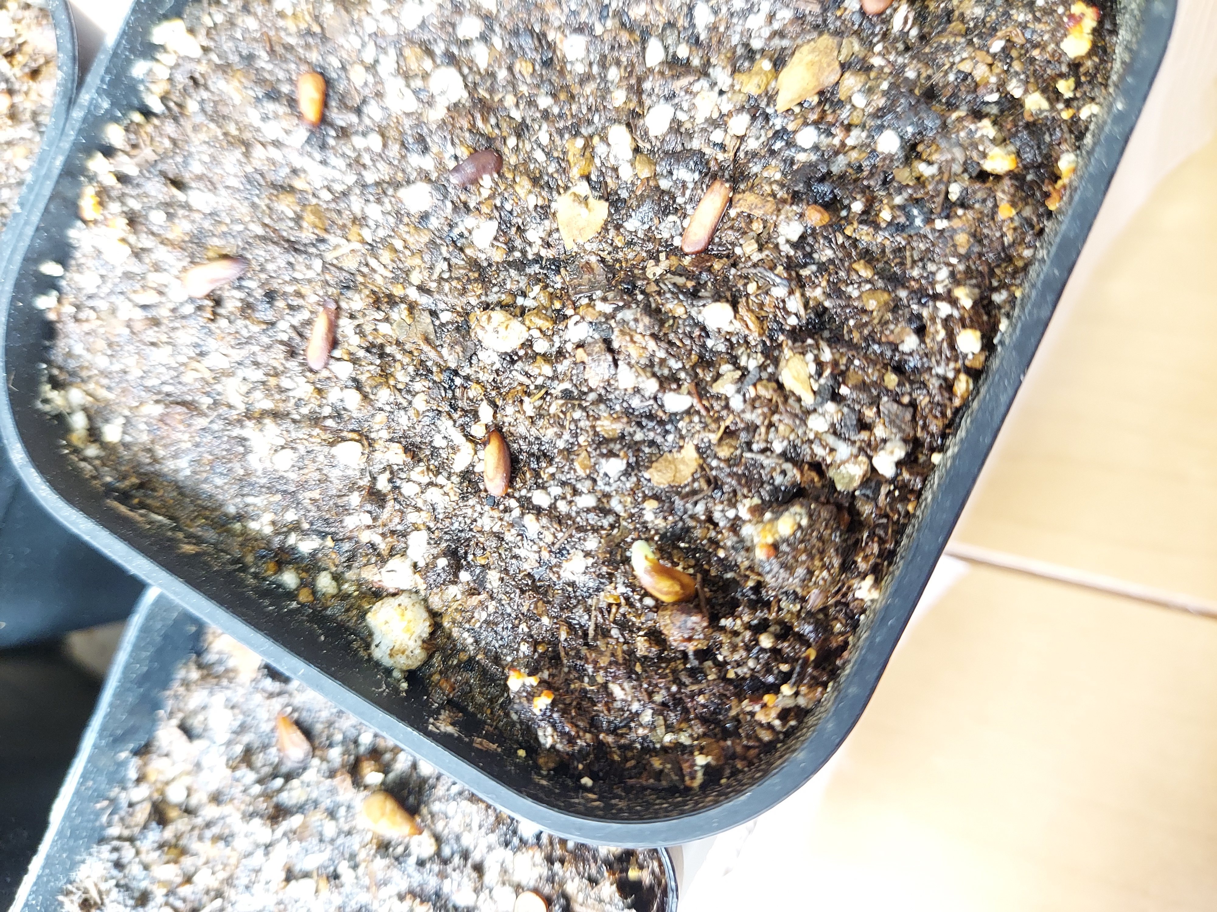 2025/10/03播種 2025/10/15撮影播種6粒 発根確認3粒 発芽2粒前処理:ベンレート...