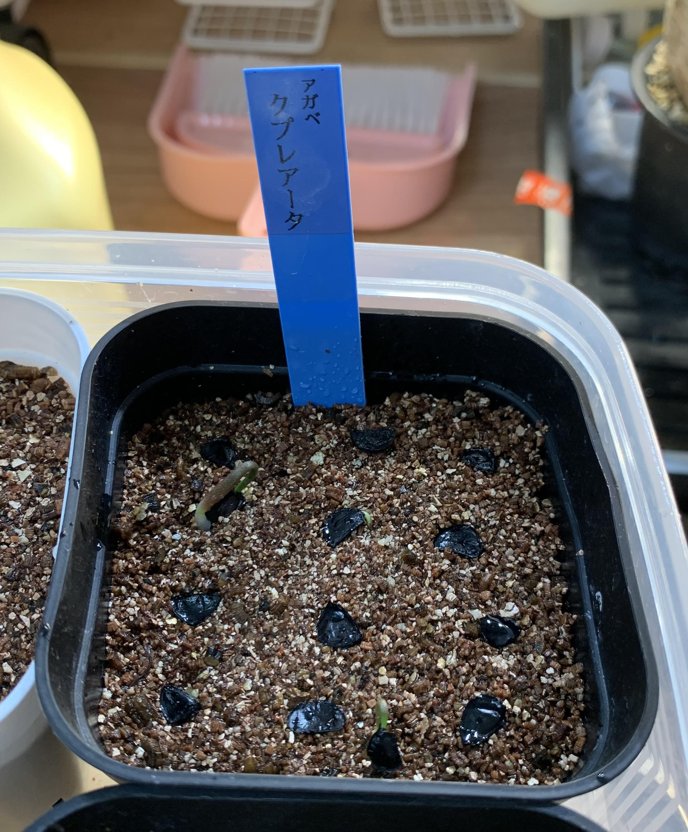 2022年5月播種。赤玉土小粒。モニター用でいただいたものを12粒撒いて10粒発芽。モニター用という...