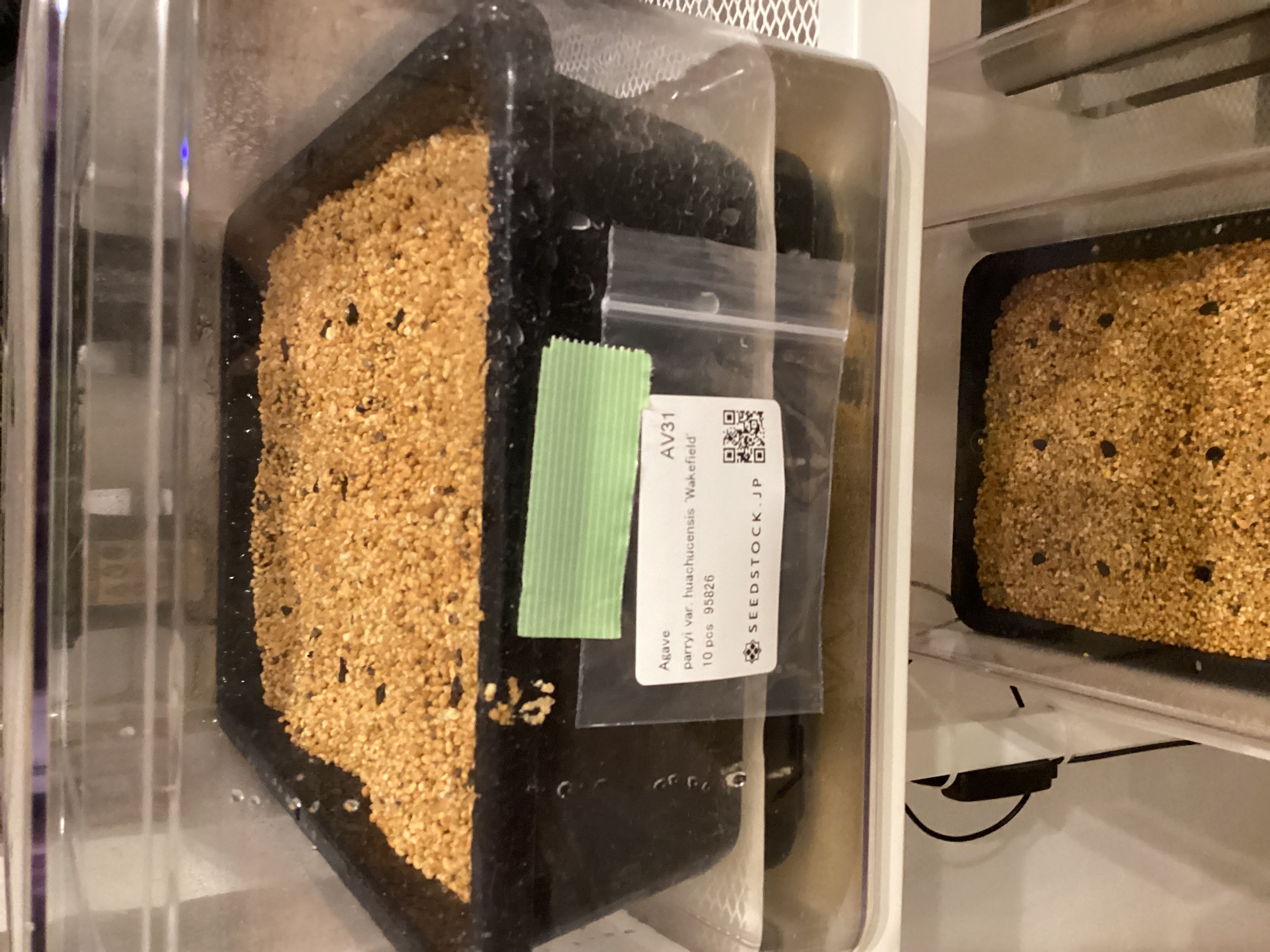 撒いて5日目。ほぼ全ての種子が発根してます。アガベなので、このまま放置で元気よく育っていってくれーい...