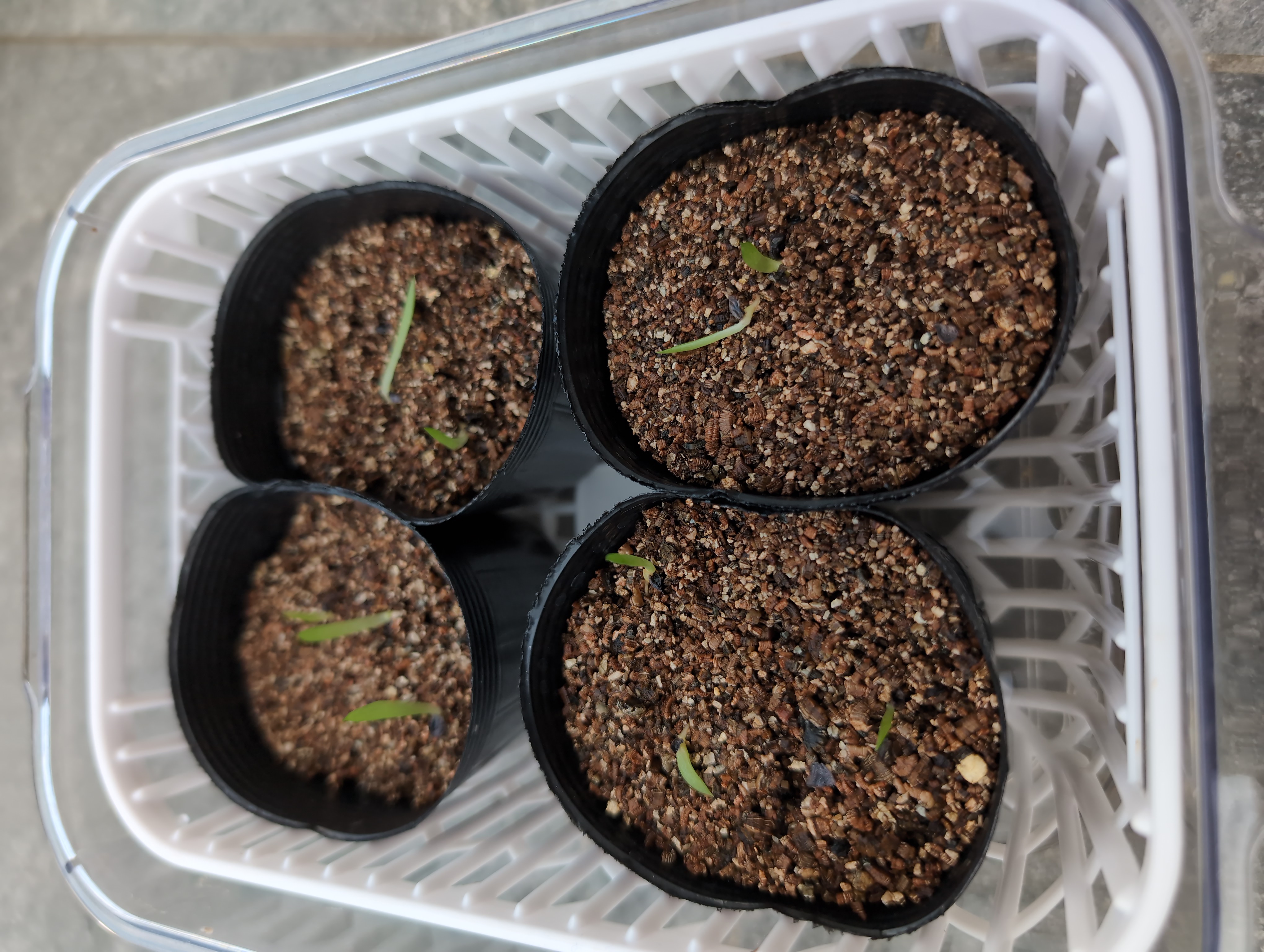 2025/06/09頃播種2025/07/03撮影4粒/12粒発芽ベンレート&メネデール溶液...