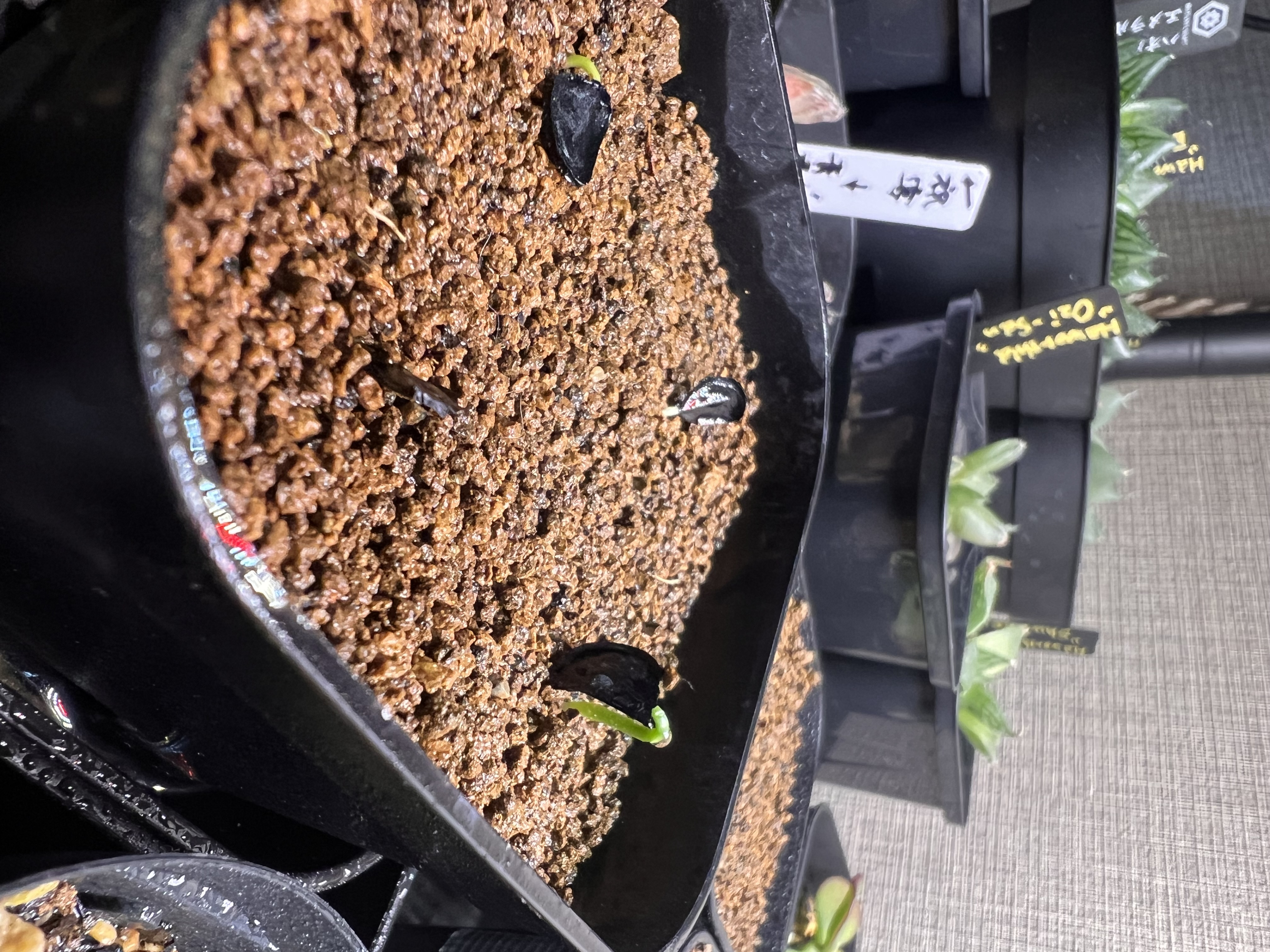 モニター3/25.12粒播種ダコニール液に12時間付けこみ。市販の種まき用土。発芽10、良好。...