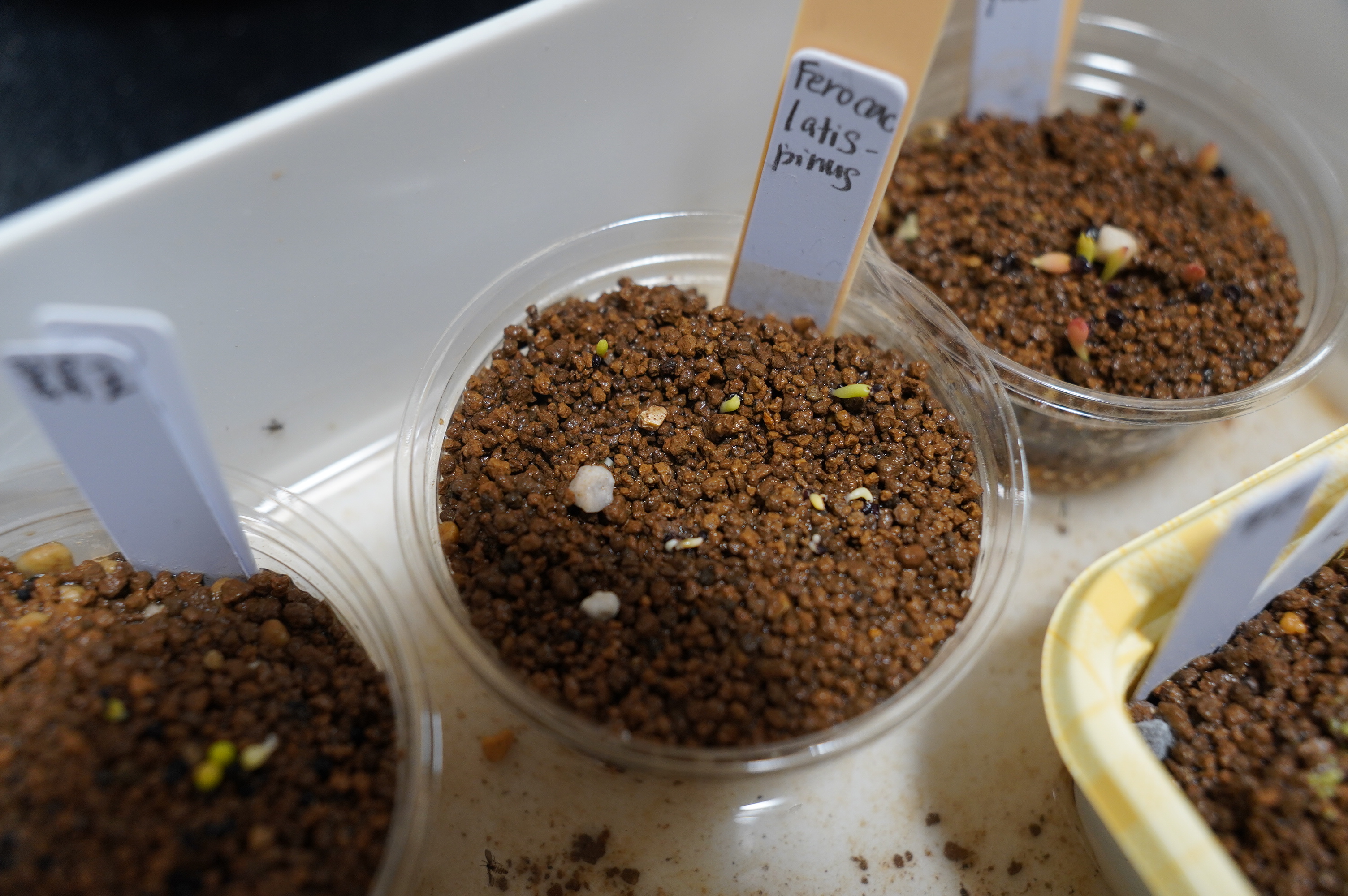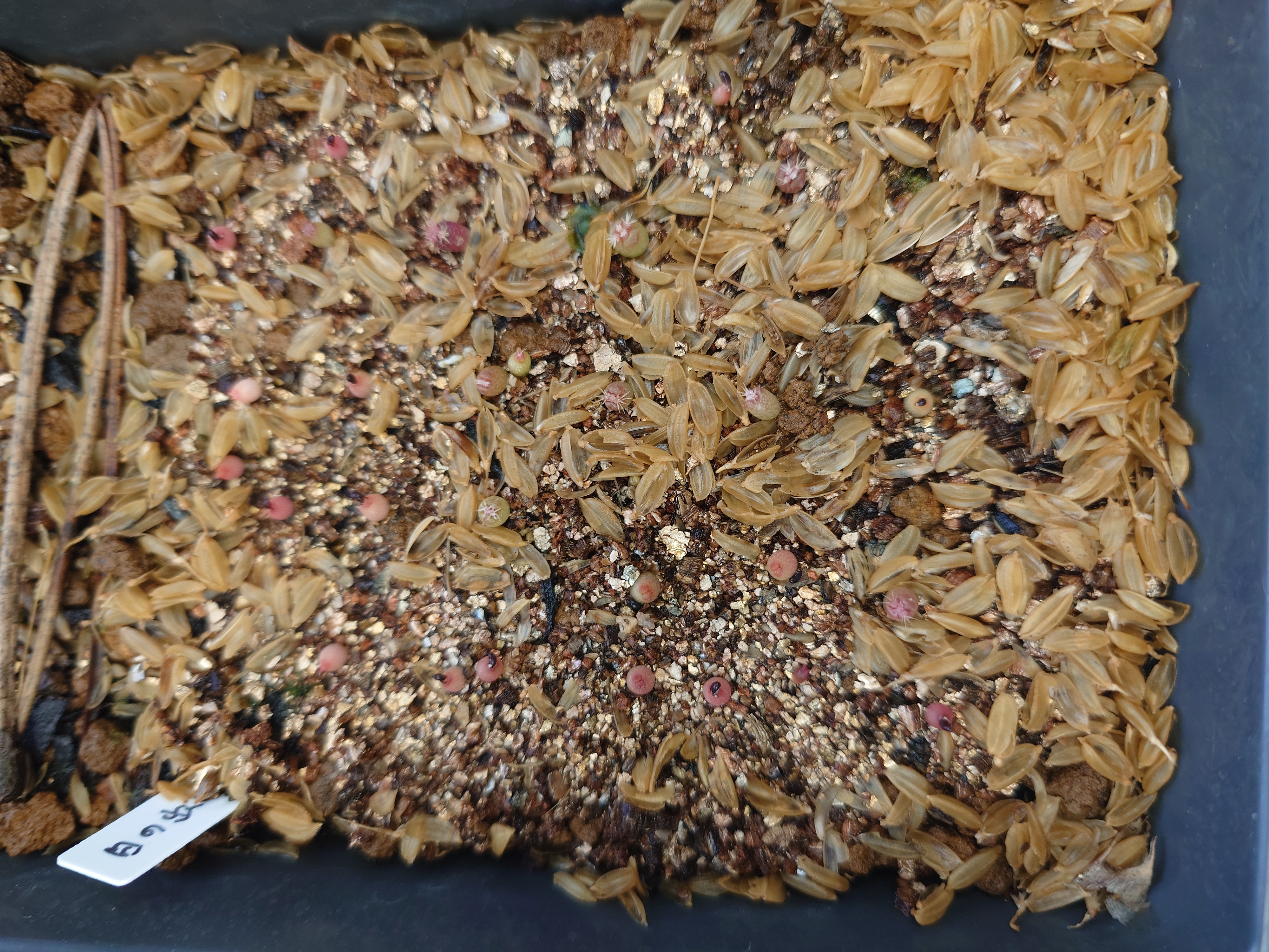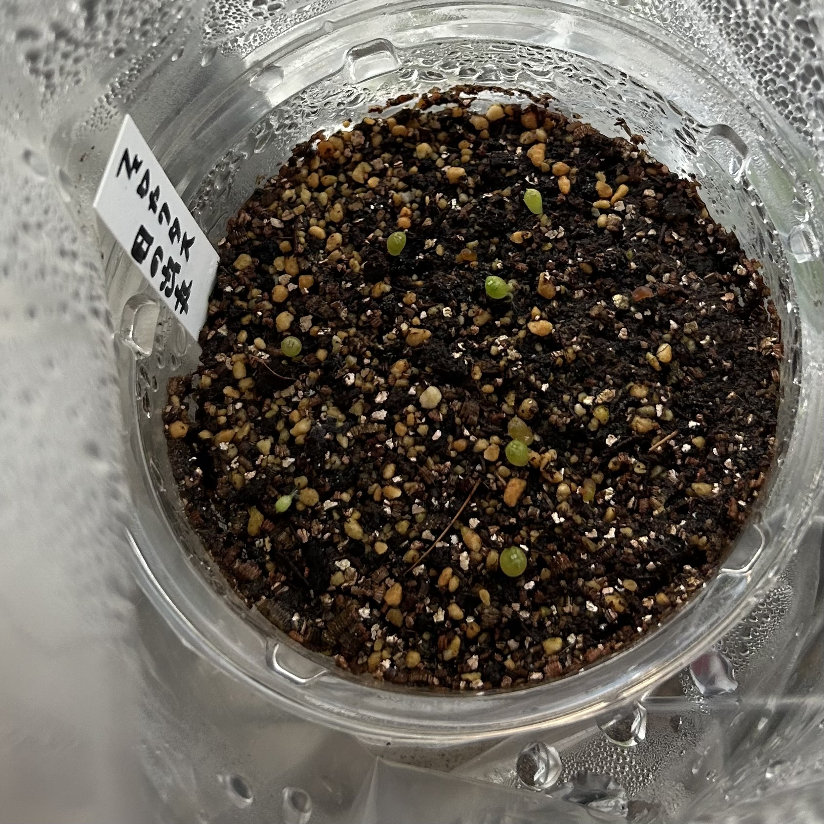 用土:サボテン用土細粒、熱湯消毒管理:腰水、ベンレート2000倍+メネデール100倍液を噴霧、遮光播...