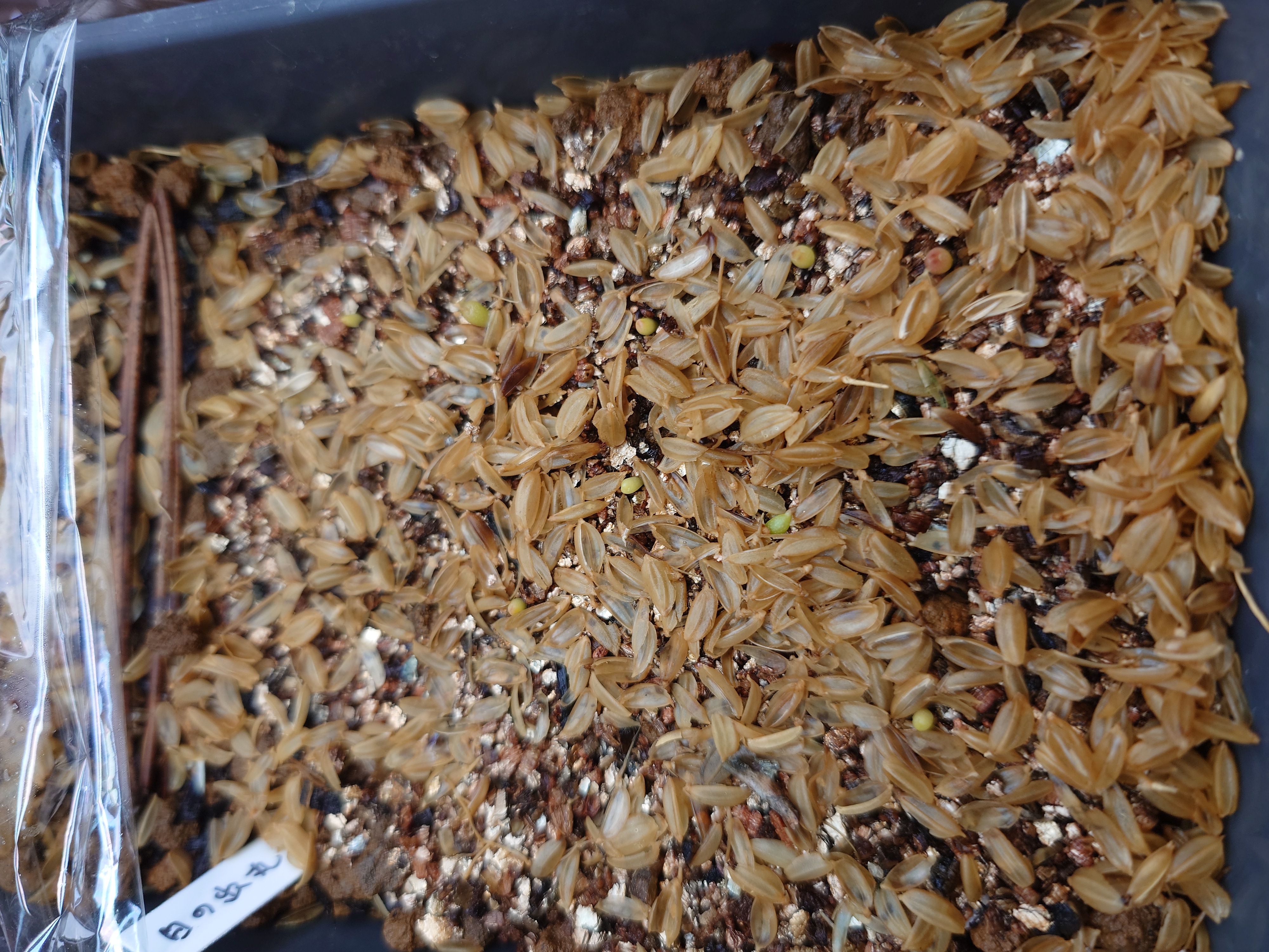 1年以上前のモニター種子鹿沼土の細粒へ4月20日播種撮影日6月1日細かすぎて何粒あったかはわかりませ...