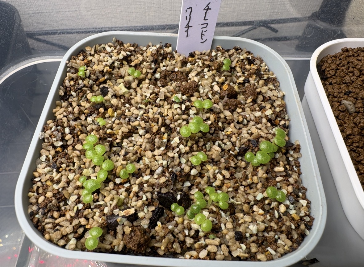 2025/9/27播種2025/9/28発芽開始22粒/80粒位?鹿沼土細粒に播種。メネデール溶液に...