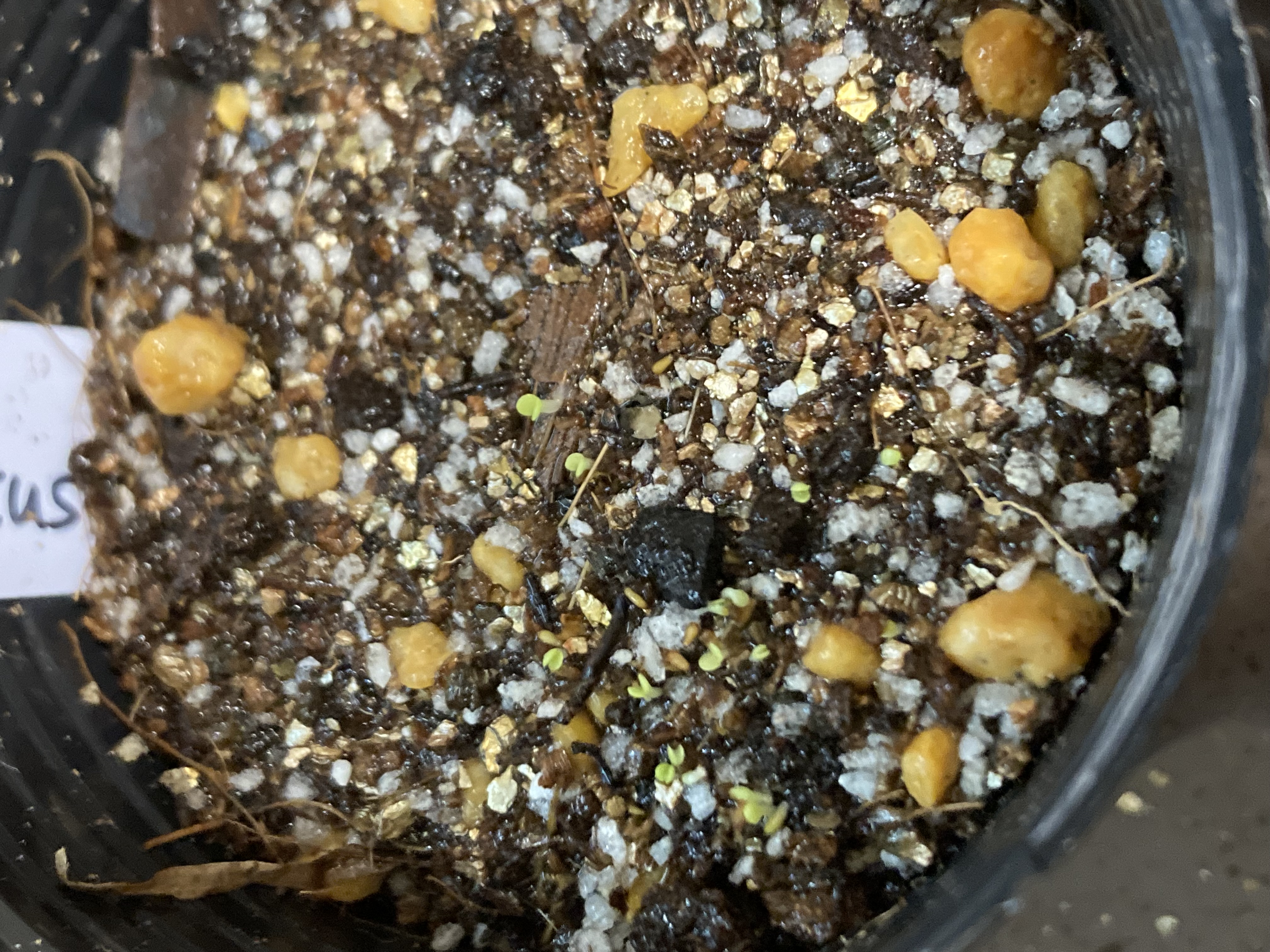 播種日6/20 撮影日6/25播種数 / 発芽数50粒/9割ほど赤玉メインの用土に細目のバーミキュラ...
