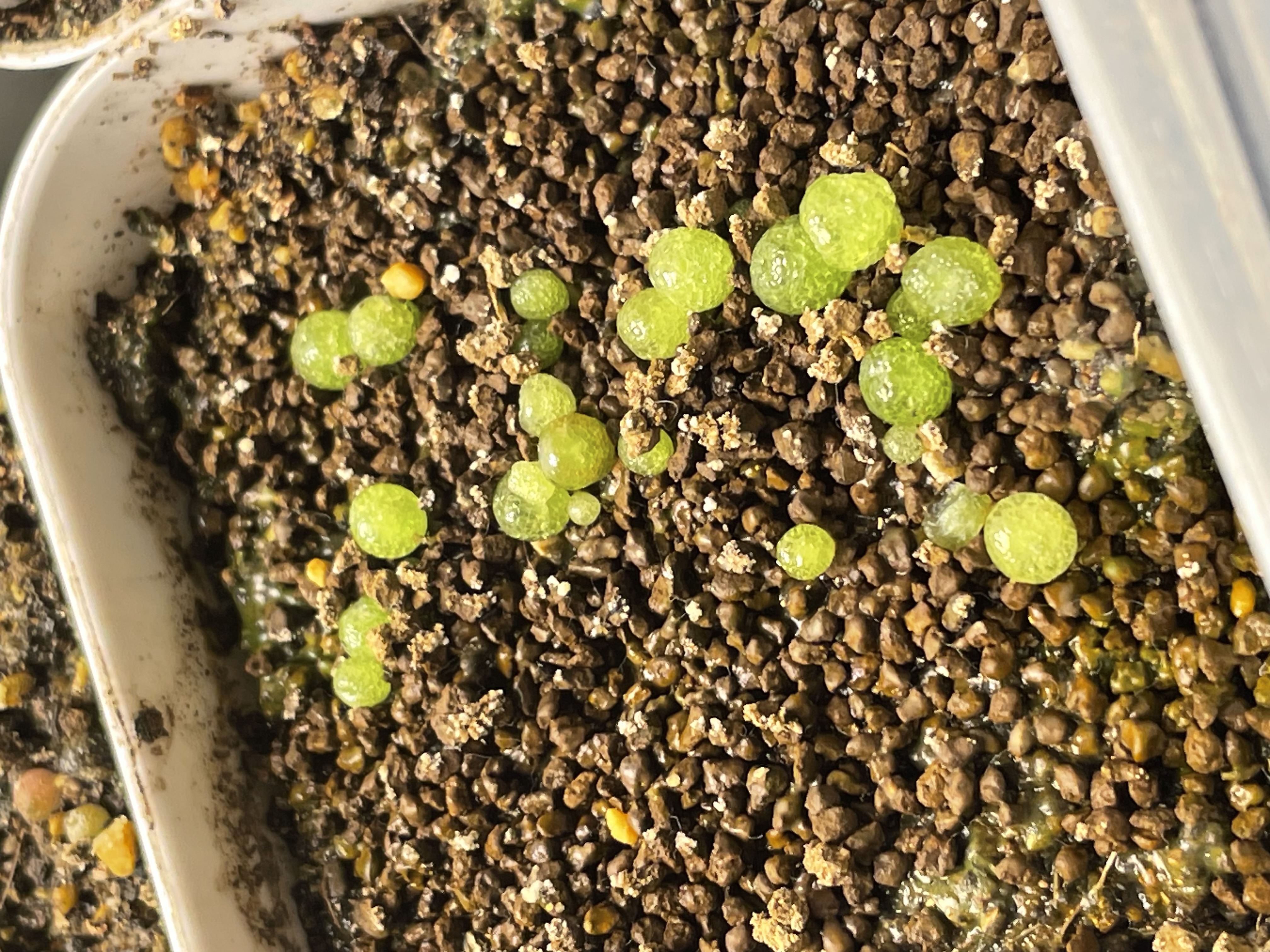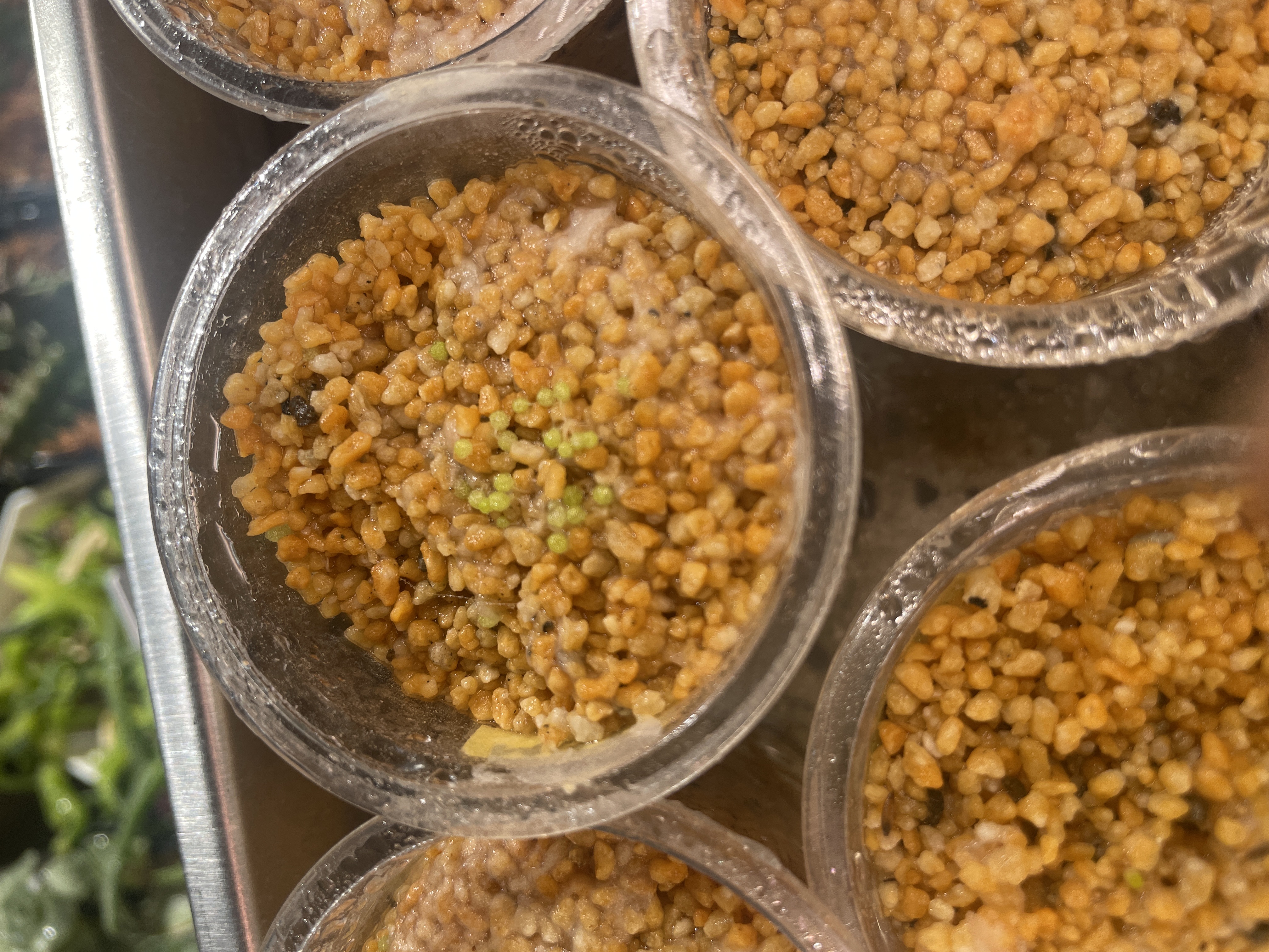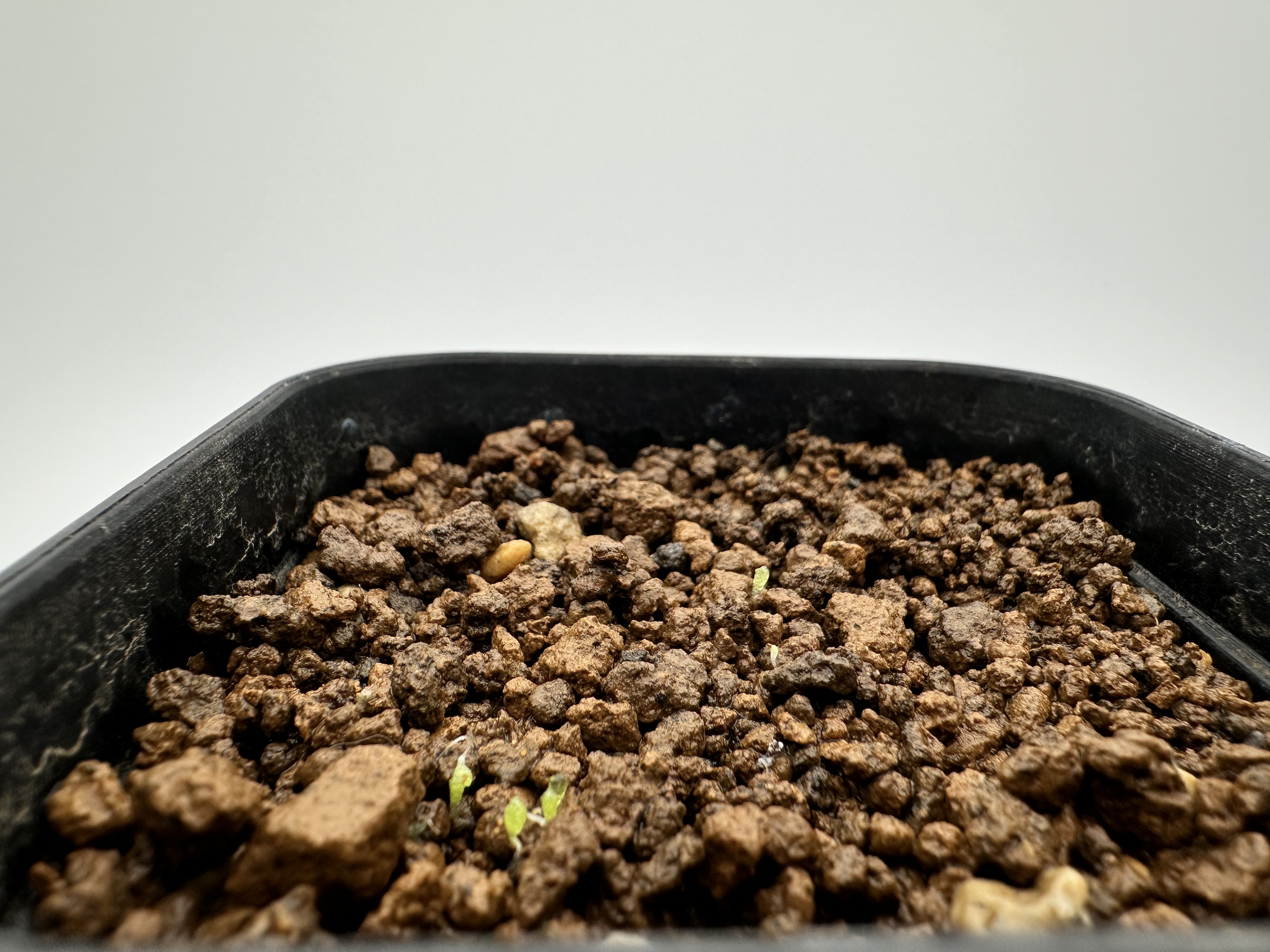 播種後、腰水管理赤玉土種蒔き用土1番大きい株どアップ...