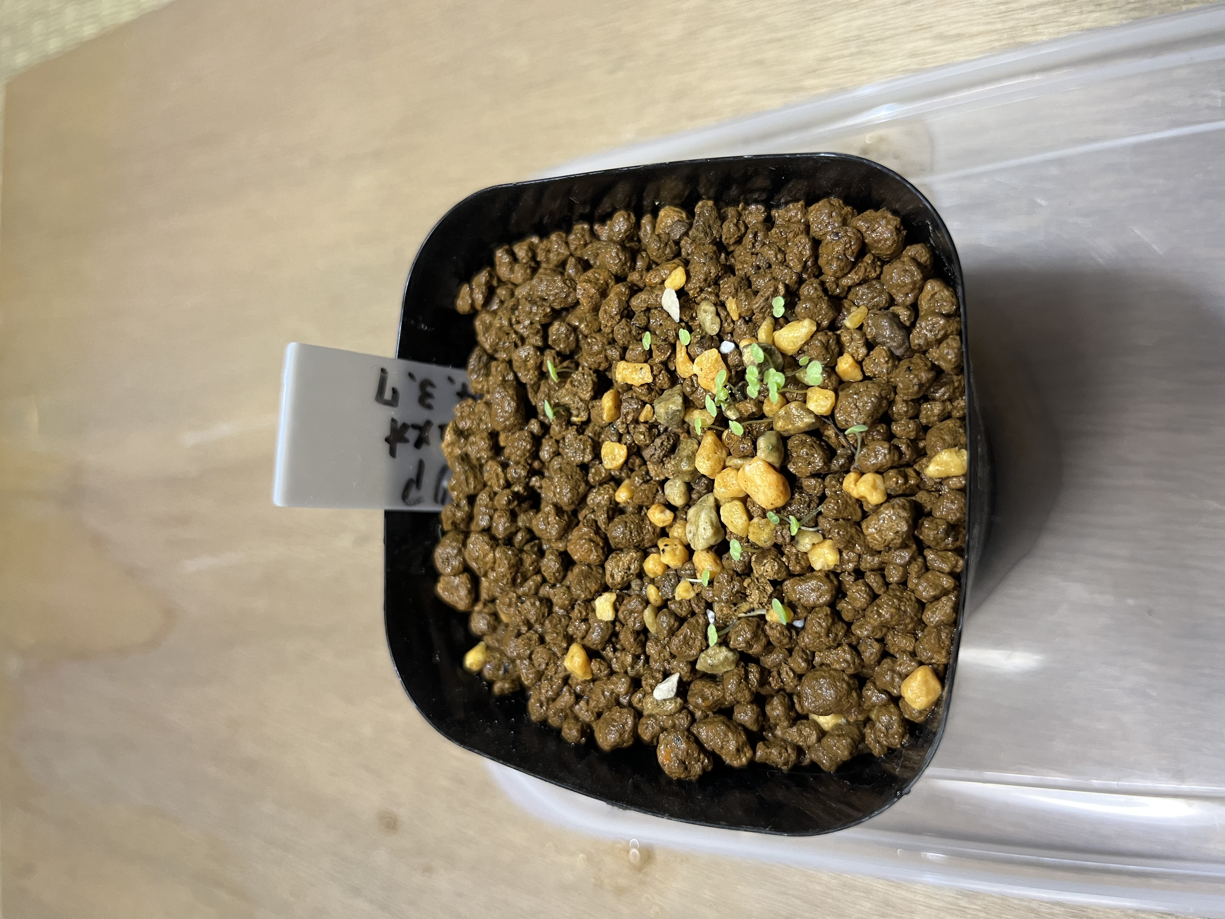2025/3/19播種2025/4/1撮影20粒以上播種、24粒発芽確認軽石細粒、鹿沼土細粒、ピート...