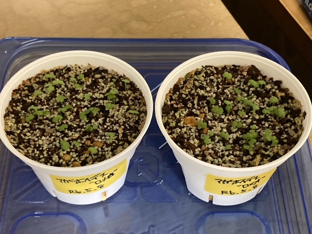 湿度低めの方が根が土に入りやすい。八割発芽。