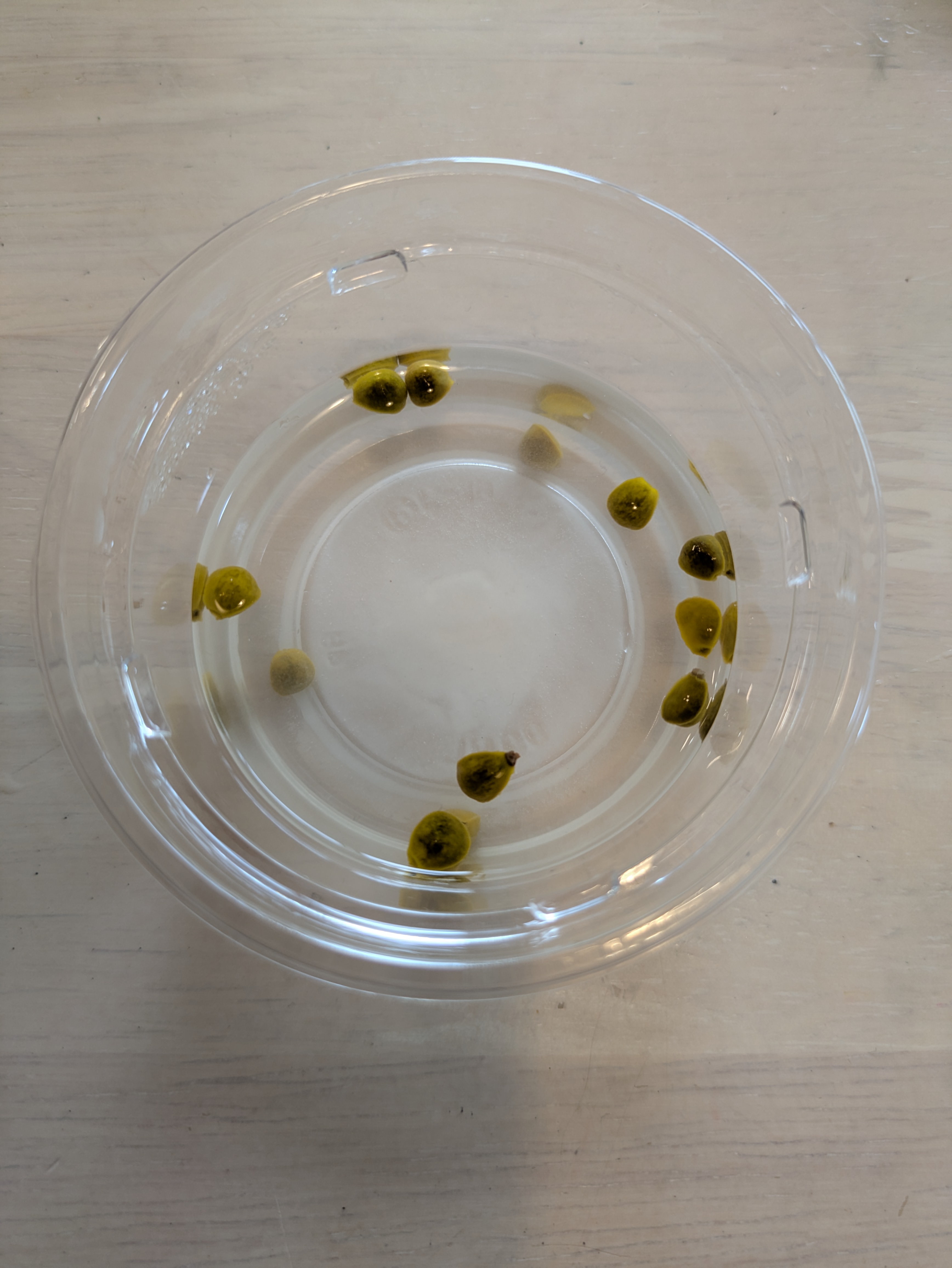 3/26 6粒播種 5/22 発芽0で惨敗!水に漬けても1粒はすぐに沈むも半日置いてもあと1粒が沈...