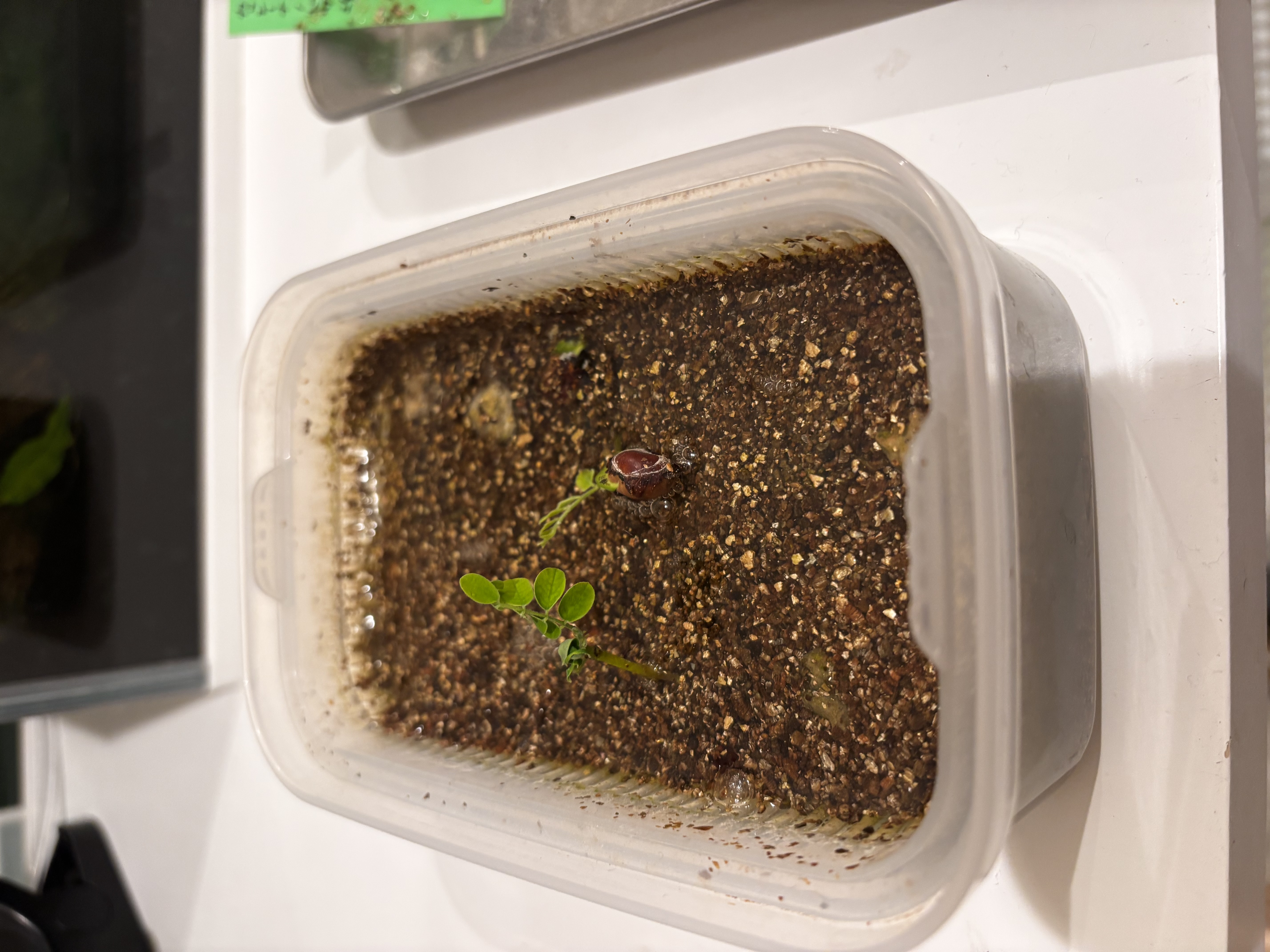モニターで頂いた種子です。 播種から2週間程度で、12粒中4粒発根、そのうち3つが成長中...