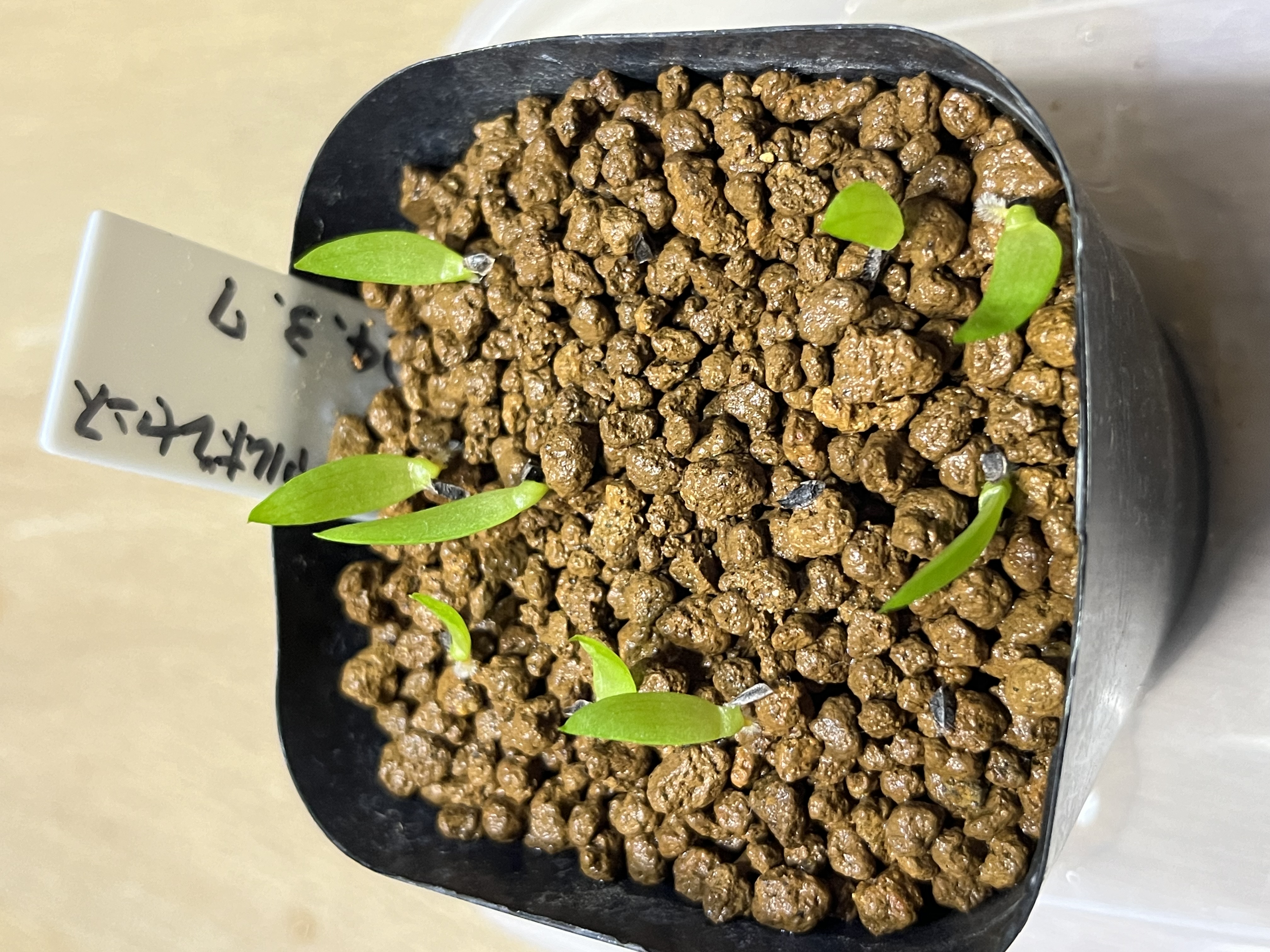 発芽率は5割近くありました用土は多肉用土+マグァンプK赤土の中粒を奮ってで微塵を表土に1cm外で朝日...