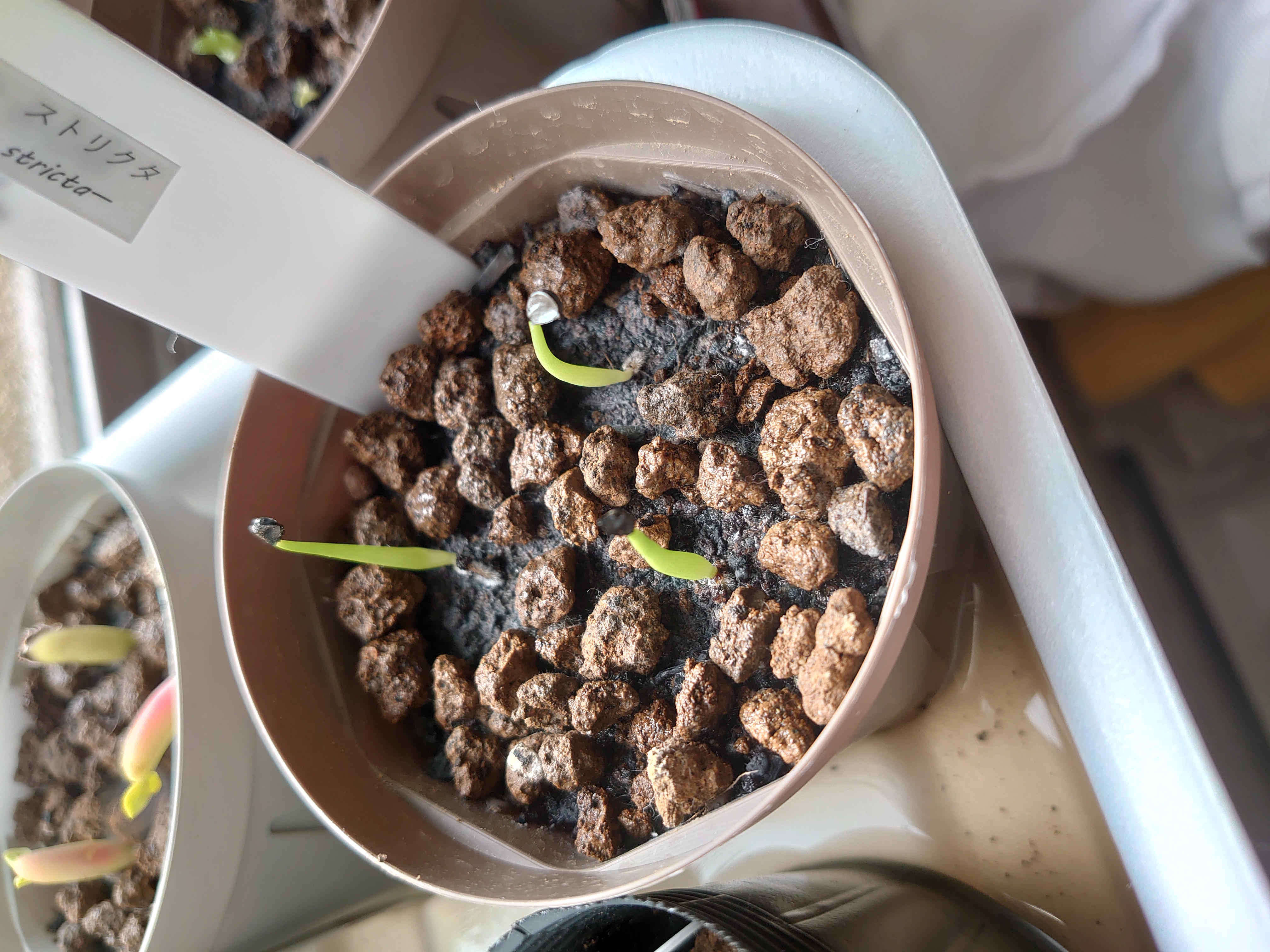 3月中旬に播種。室内、無加温で腰水管理。2週間ほどで12粒中10粒が発芽しました。...
