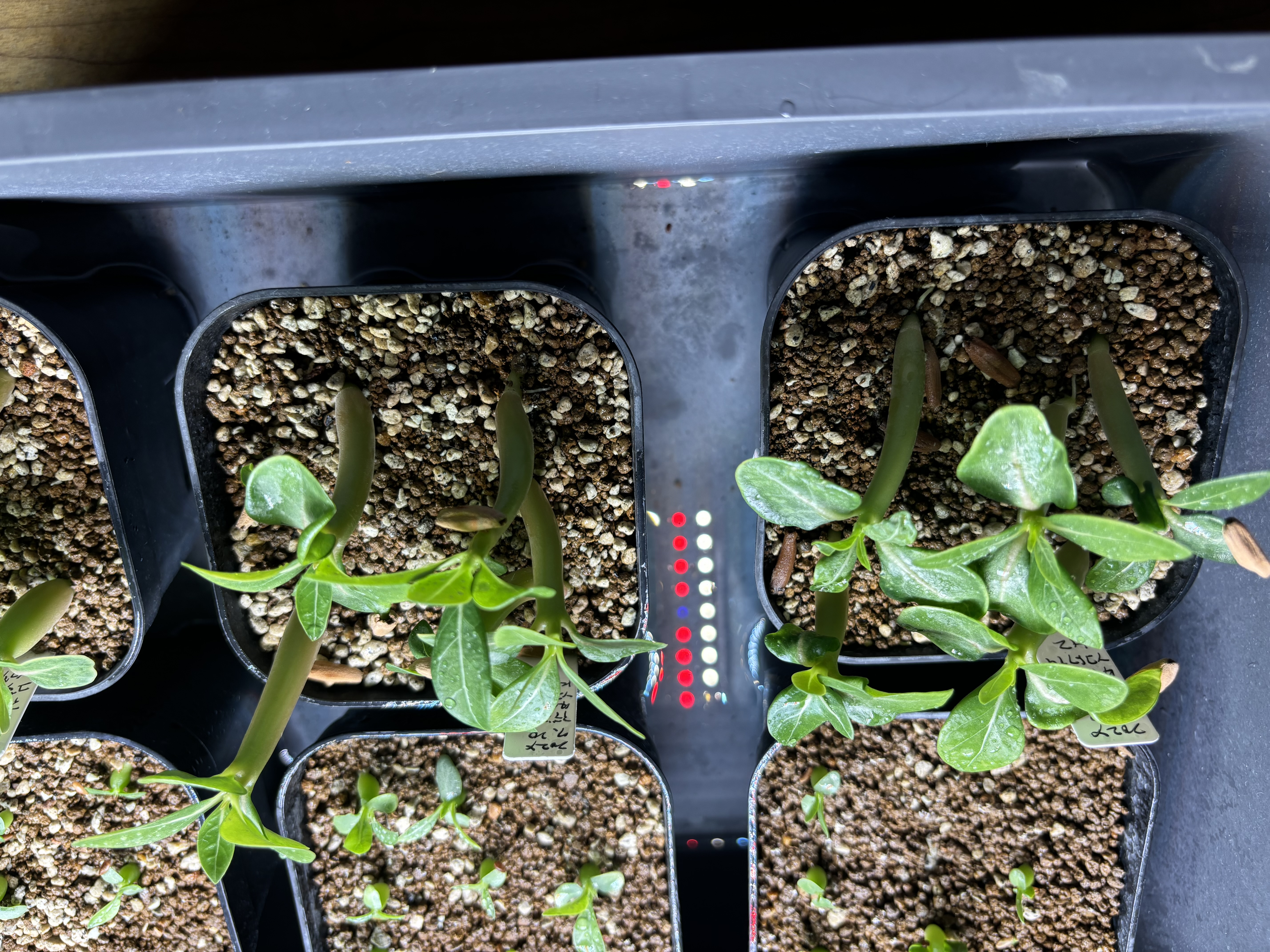 2025/8/22播種 2025/10/8撮影播種数6 発芽数5播種前処理 ベンレート+メネデール溶...