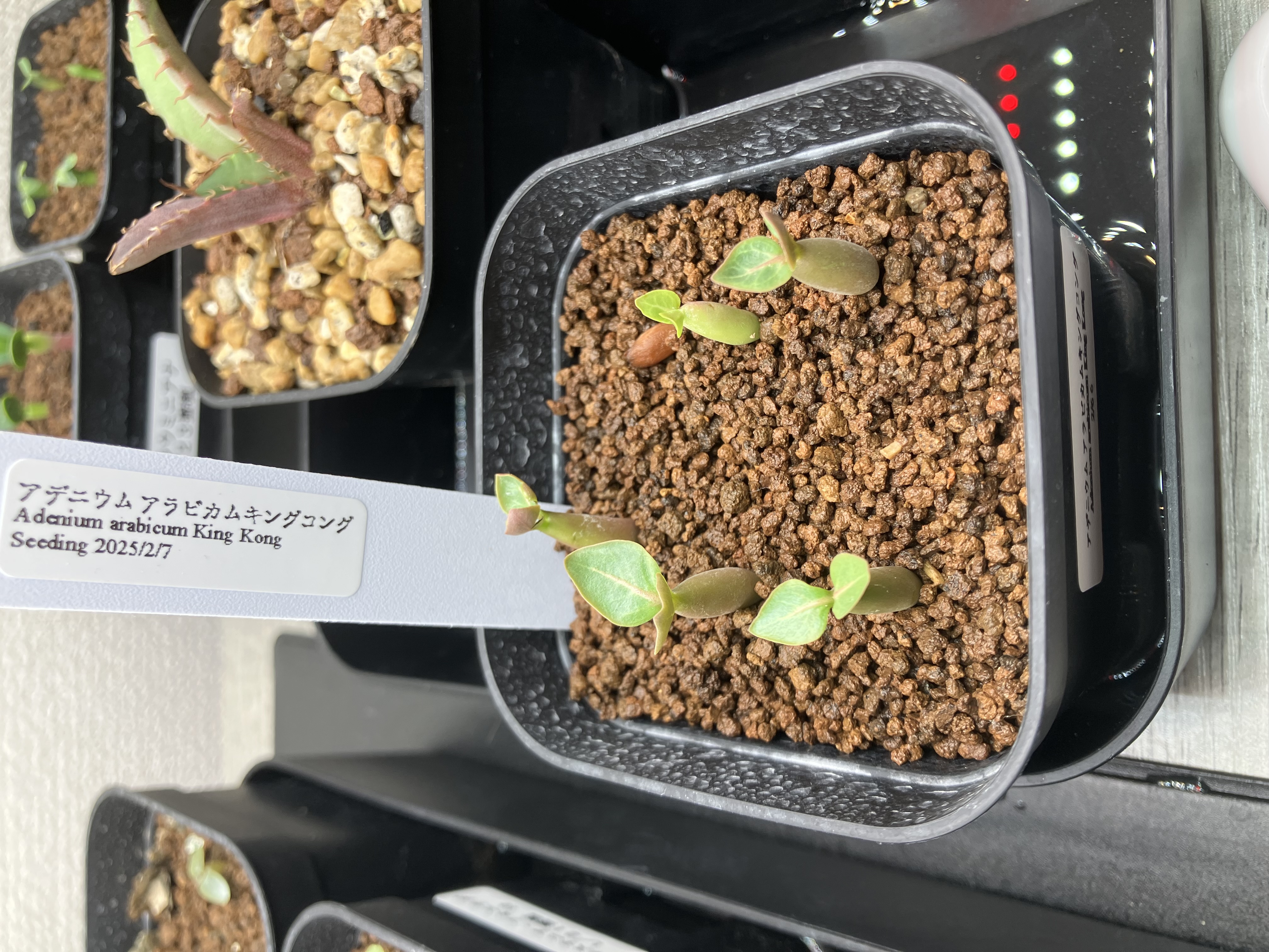 初めてのアデニウム播種 ① (6種x6粒のチャレンジ)の写真中央手前の黄緑色の株が曙斑のようです?3...