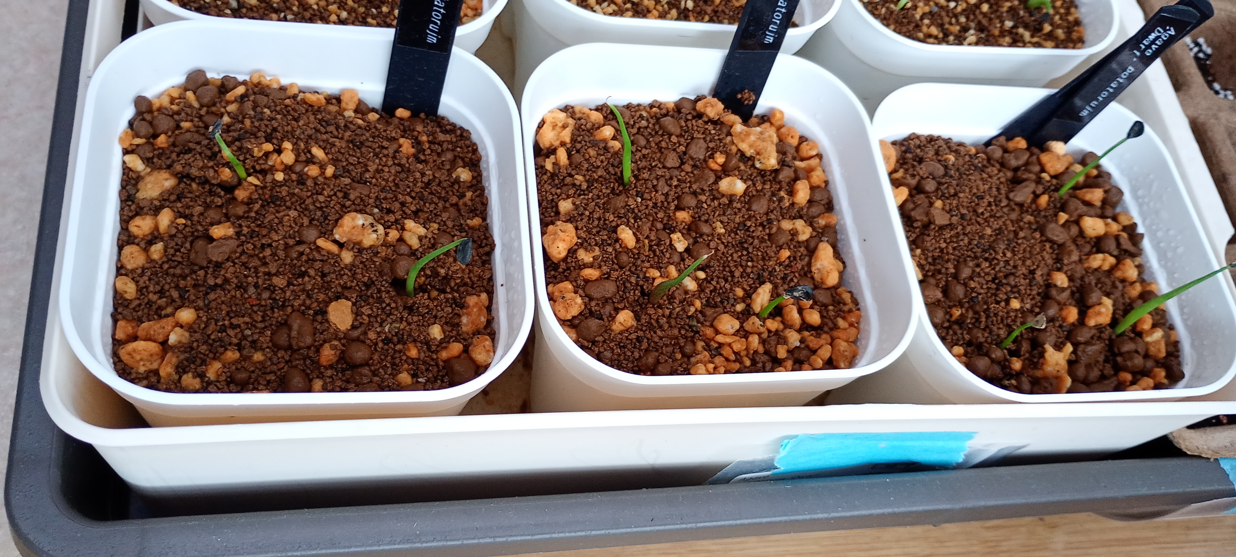 2024年10月27日播種/11月16日撮影10粒播種/1粒発芽播種前に24時間市販の殺菌剤とメネデ...