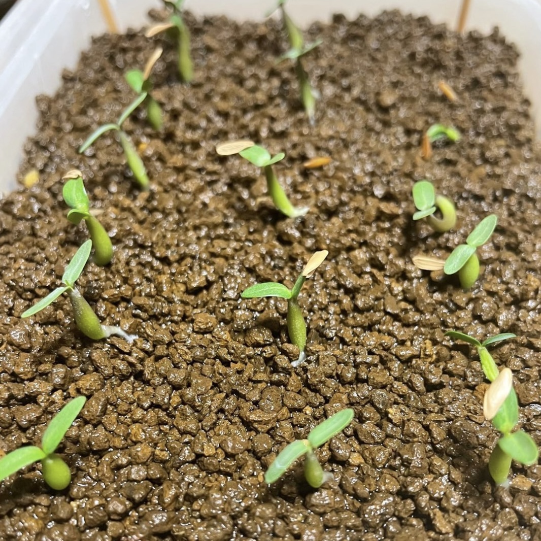 2023年6月30日播種2024年5月6日撮影10粒中7粒発芽メネデール溶液1晩漬けおき植え付け用土...