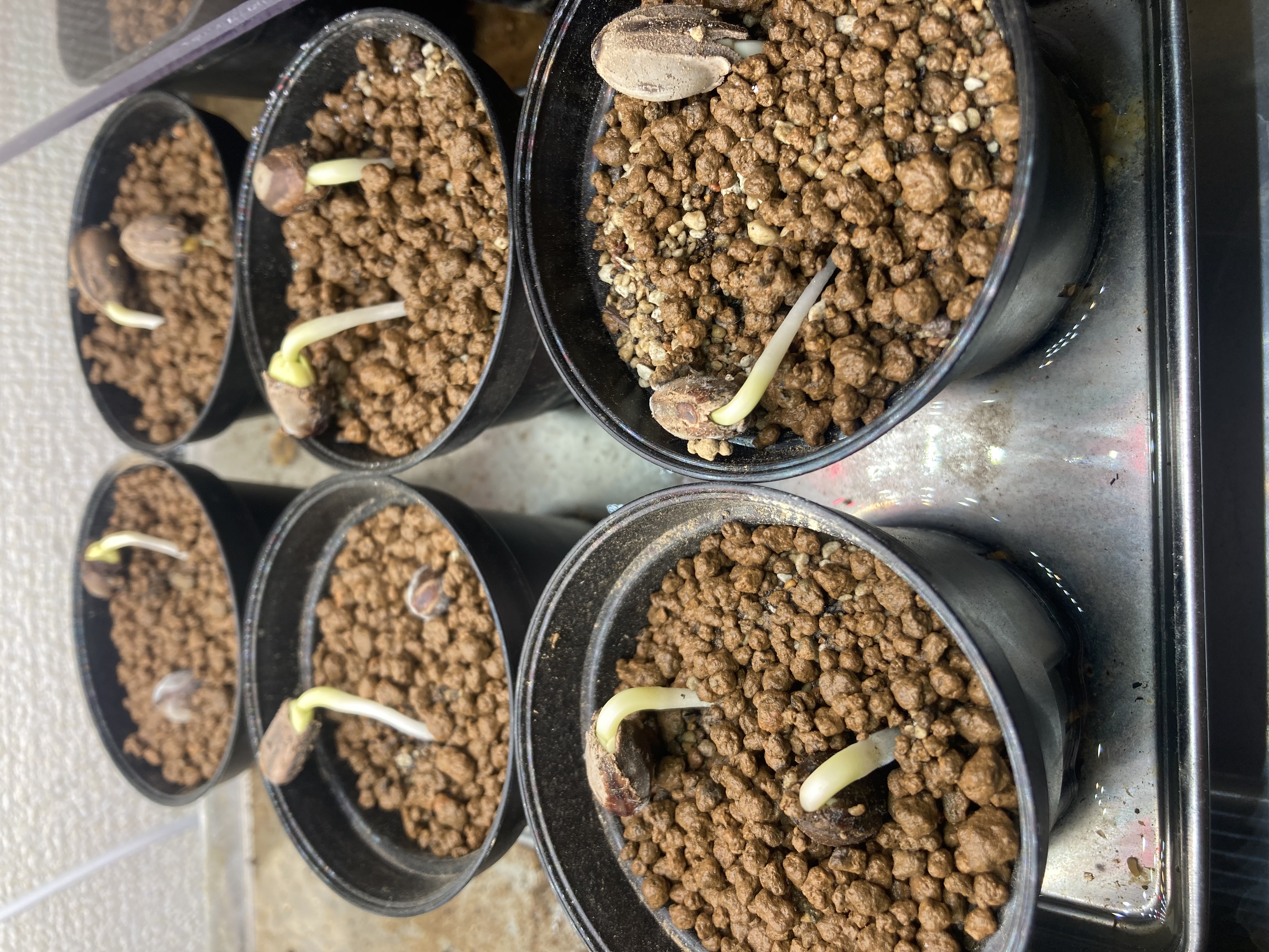 7月20日 6個播種3個発芽しました。発芽後、室内の窓際で腰水管理最近は半日日向の外に出して管理して...