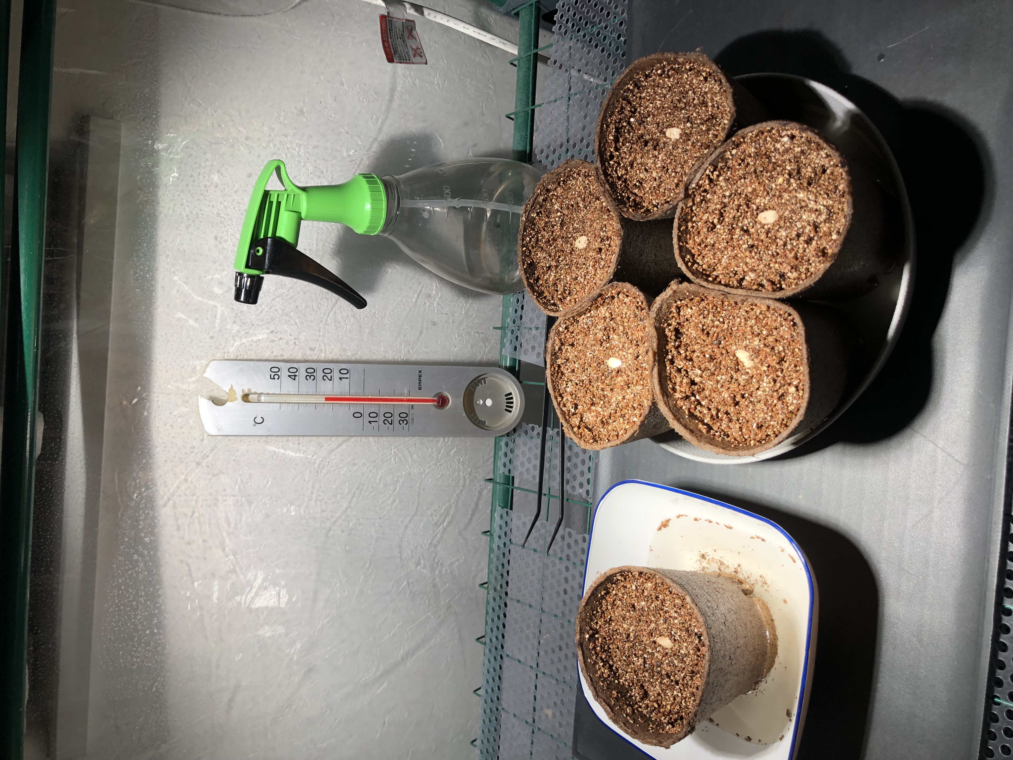 2025/4/26播種 2025/5/2撮影6粒/4粒メネデール➕ぬるま湯に9時間、バーミキュライト...