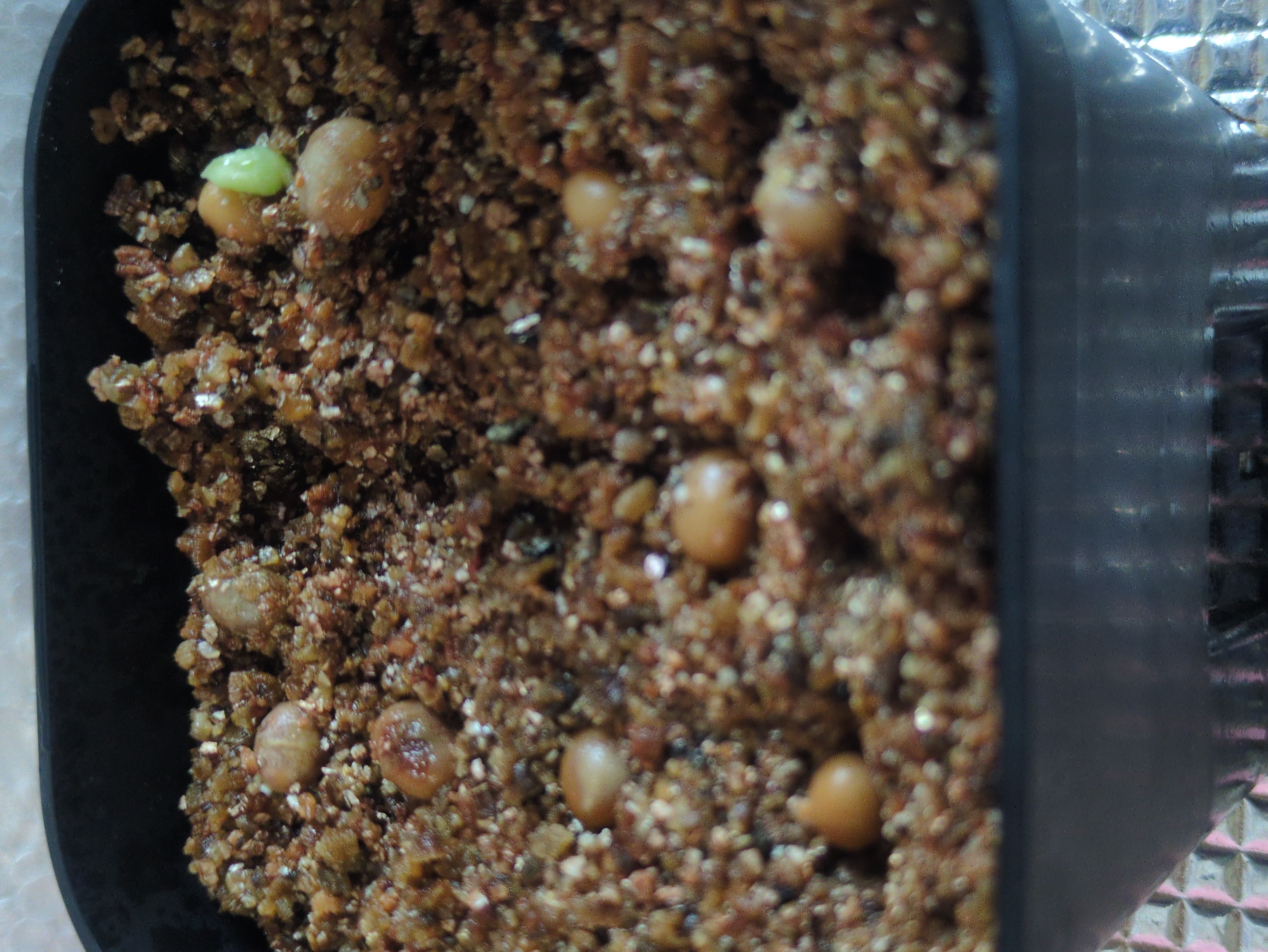 5/12粒発芽。はじめてのドラセナ。そつから根がでるの?と驚きました。