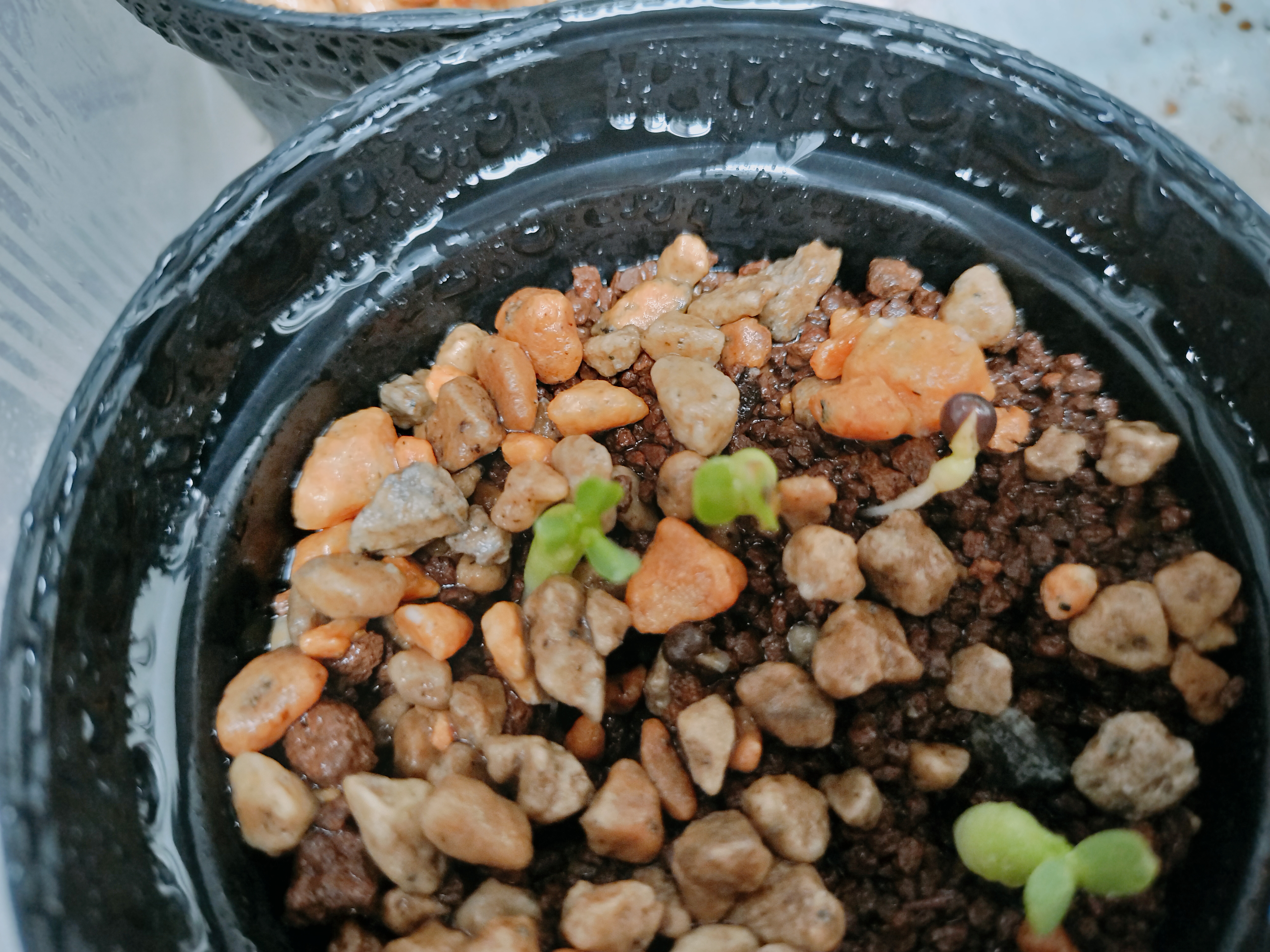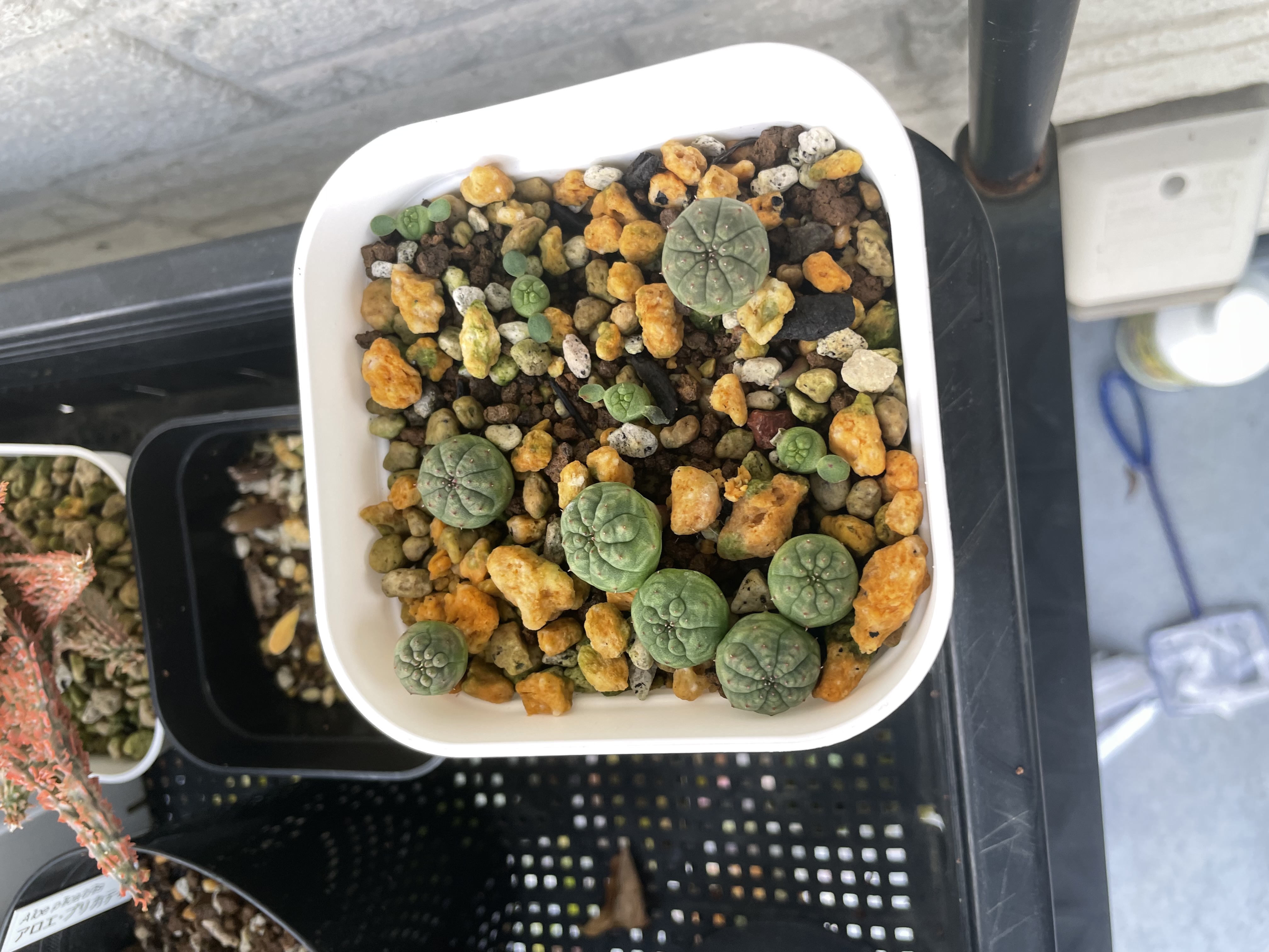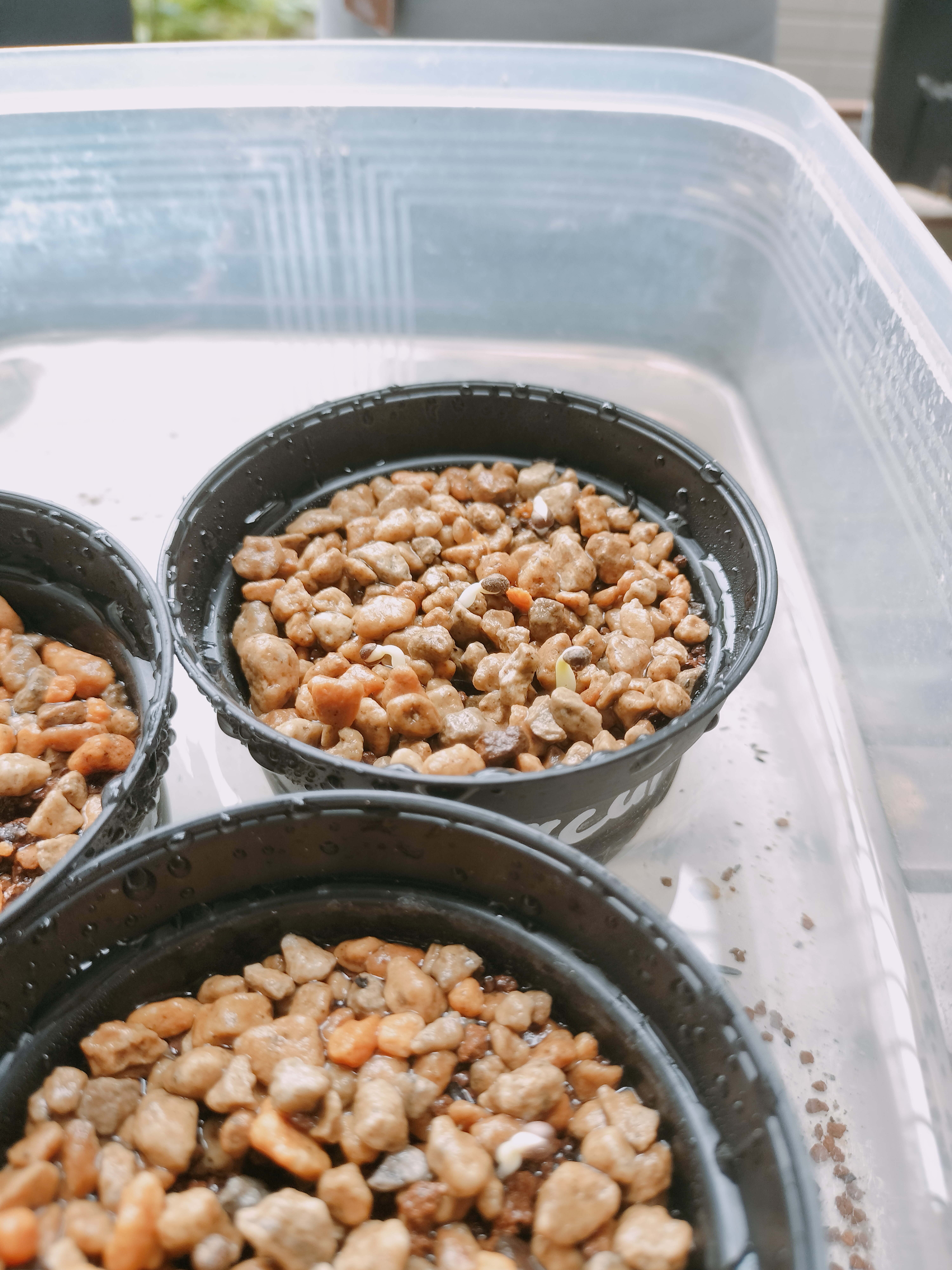 8割発芽、梅雨で何個か腐った多肉用土にマグァンプkとオスモコートハイパーk腰水、屋外管理...