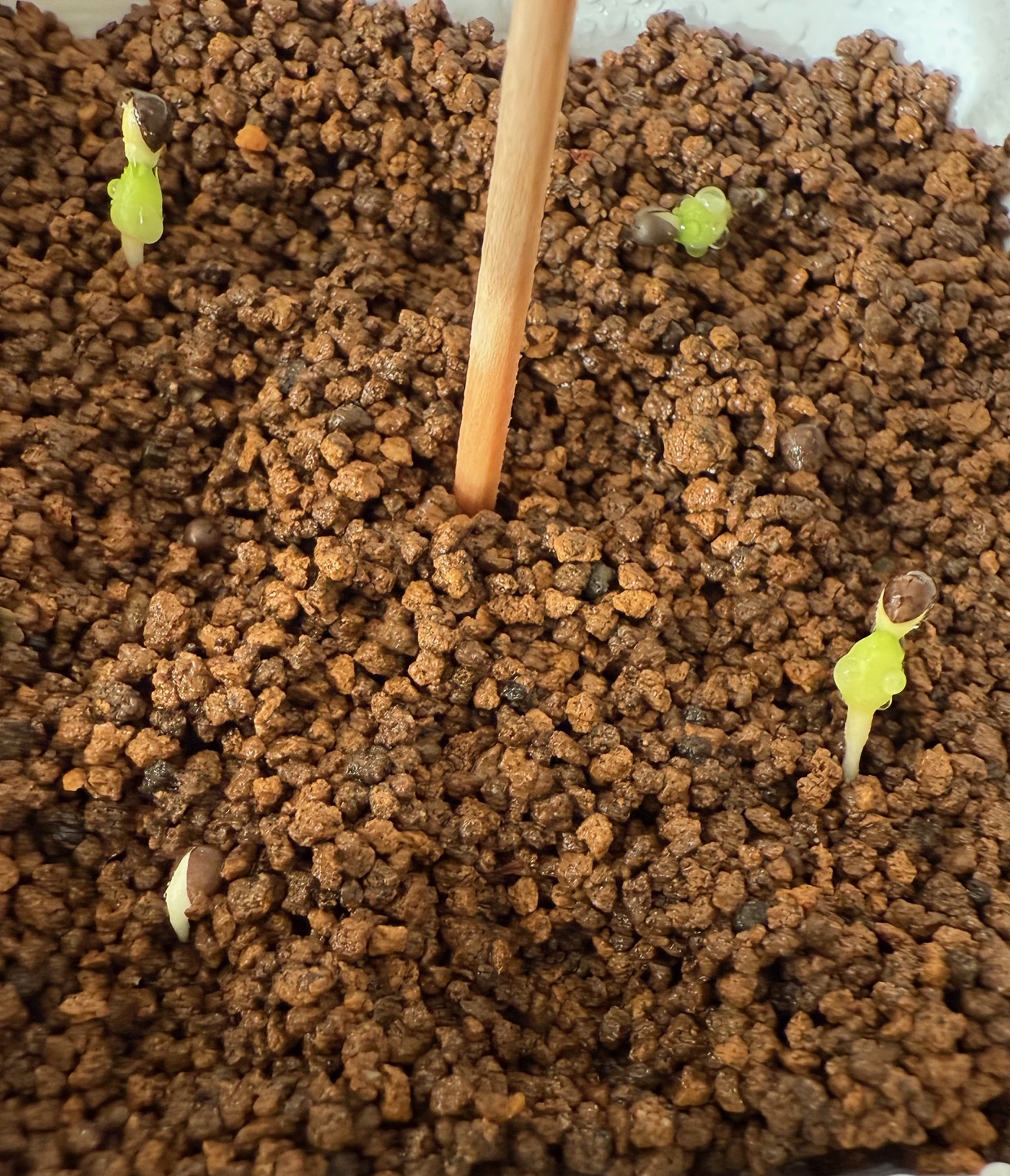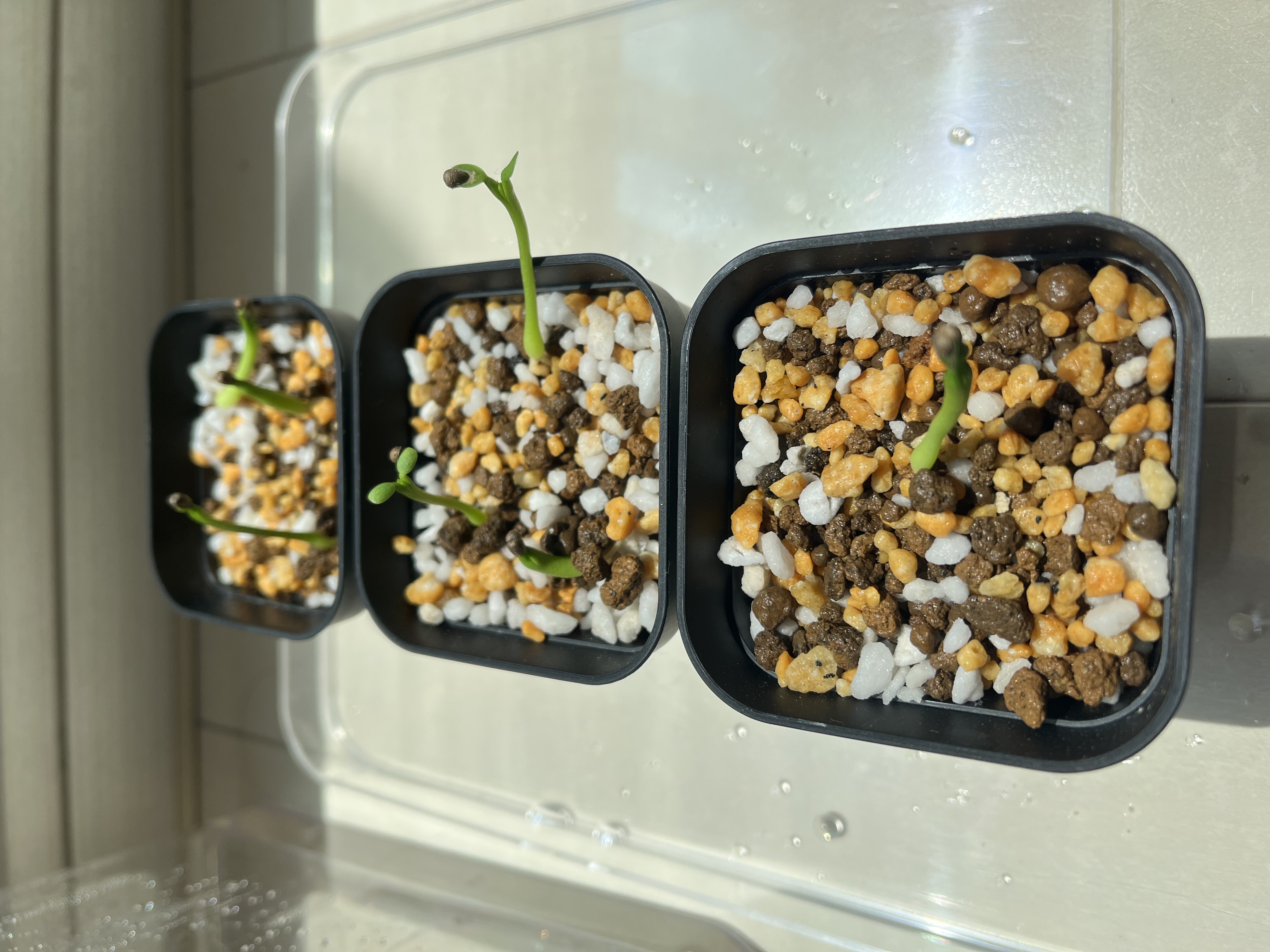 2025/11/21播種 2025/11/24撮影1粒/ 6粒播種前にダコニール+メネデール溶液に半...
