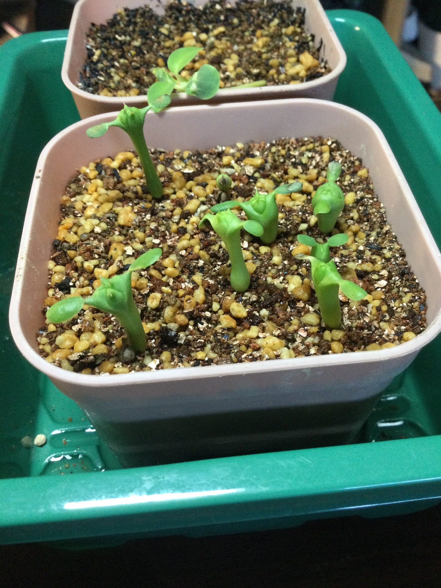 撒いて5日目です。80%位の発芽率で好調かと思います。一つ双葉ではなく、三つ葉で発芽してきたものがあ...