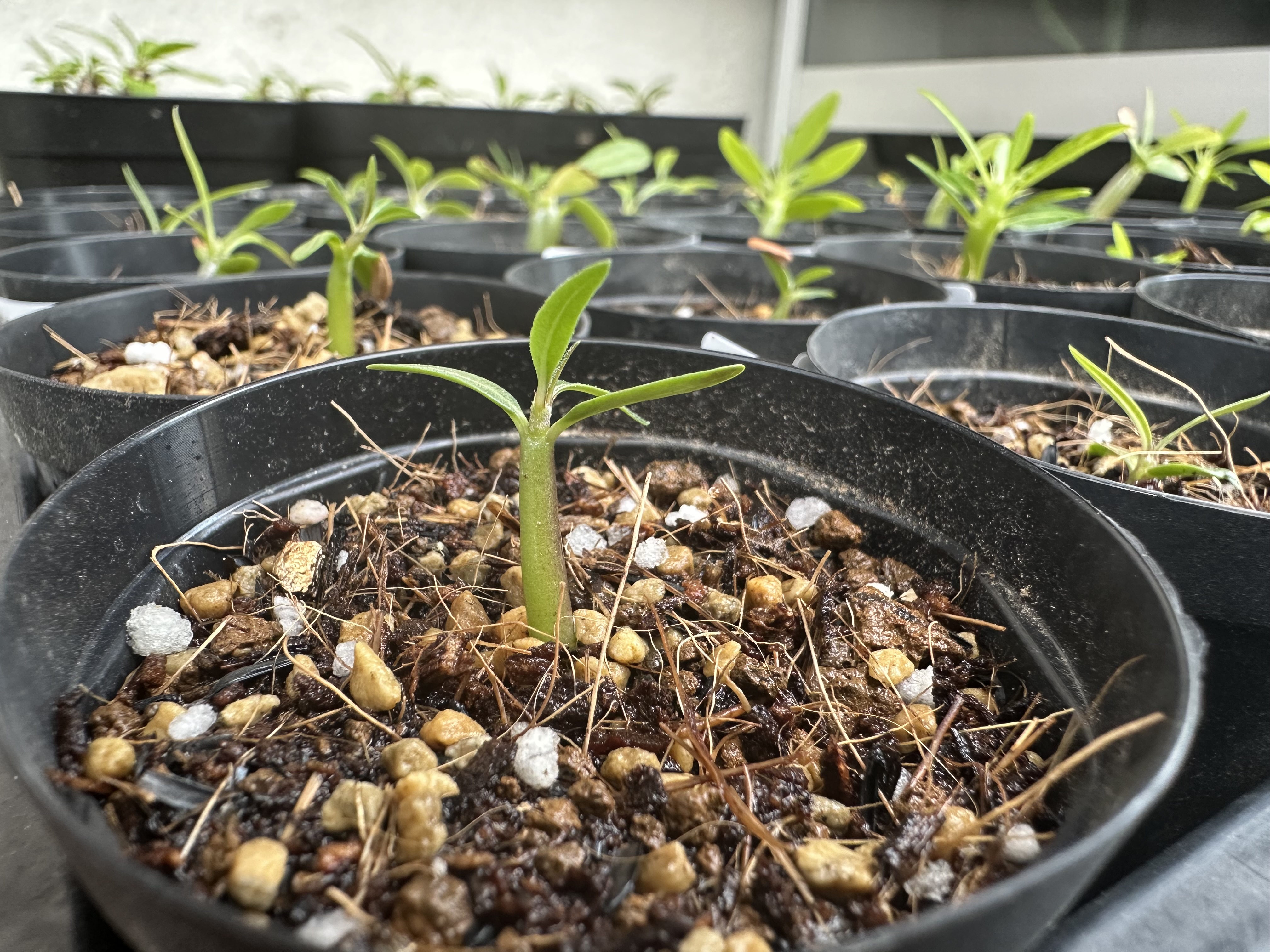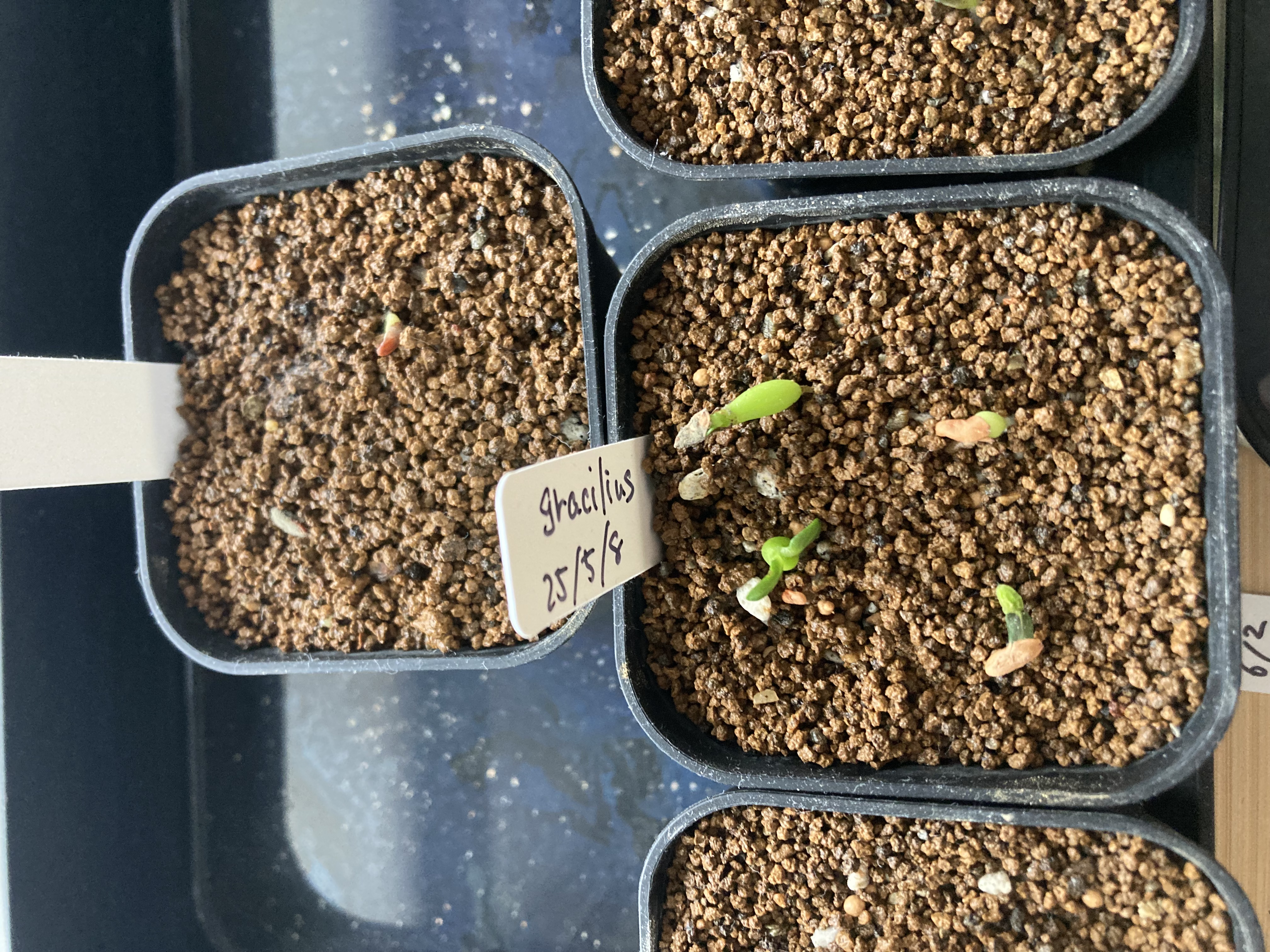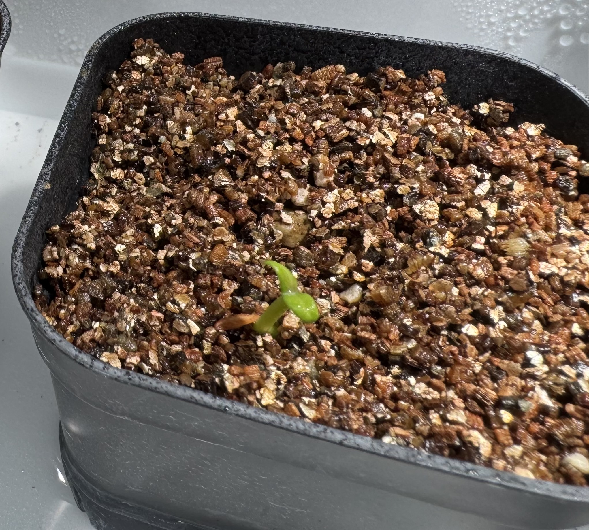 2025/5/8播種 2025/6/3撮影[ 播種数 / 発芽数 ]11粒/ 5粒,うち生存1株播種...