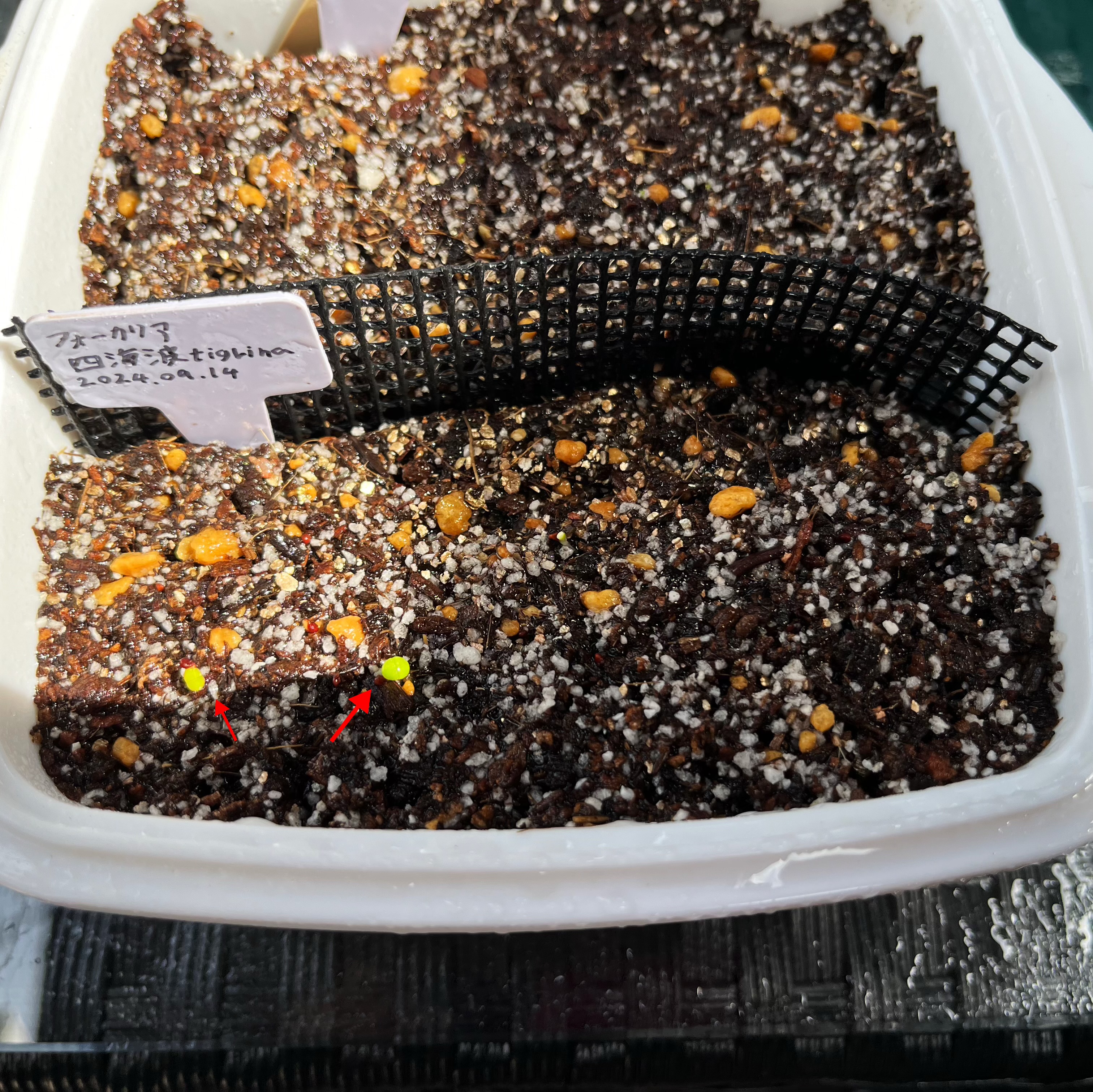 [ 播種日 / 撮影日 ]2024/9/14播種 2024/10/9撮影[ 播種数 / 発芽数 ]1...