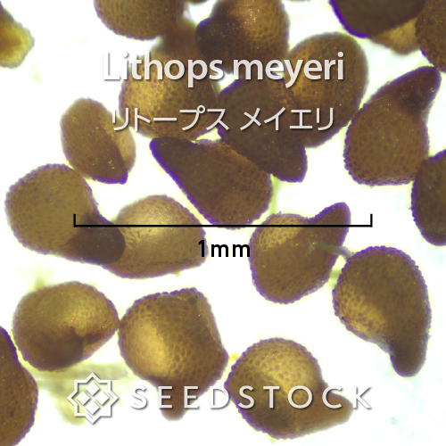 南アフリカ原産の多肉植物で、ゴットリーフ・マイヤー(Gottlieb Meyer)牧師の名を冠したこの植物は、茎がほとんどなく、地面にほど近い位置で育つ特徴を持っています。石のような見た目を持つ葉は、つねにペアで成長します。その葉の色は豊富で、黄色、緑、灰色、黒、オレンジ、紫などと多彩です。