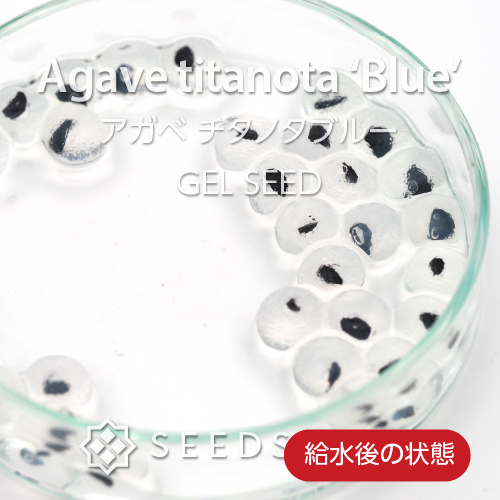 チタノタブルーに関してはもともと発芽状況も良い種子ですのであまり利点は感じられないかもしれませんが、水分98%のジェルで覆われた状態になりますので薬剤や肥料を混ぜた溶液に浸漬することでその効果を期待できる他、芽出しまでを省スペースで行うことができます。