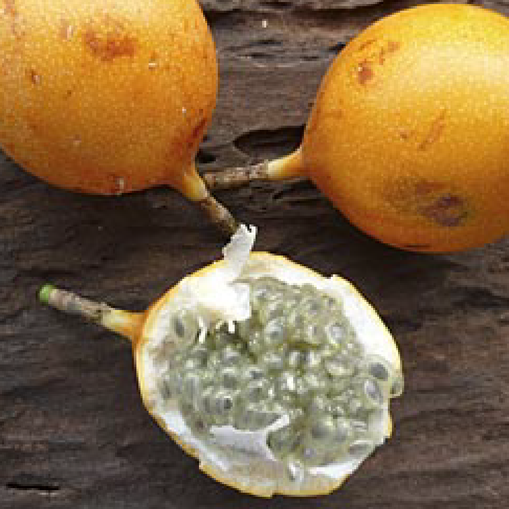 トケイソウ科パッションフルーツの一種甘く香りの良い実をつけます。南アメリカ原産