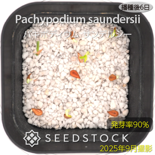 - パキポディウムの種子はカビが発生しやすい性質がありますので、ダコニールやベンレートなどの殺菌剤を希釈した液で腰水を行うか、用土にパーライトや軽石などを混ぜて通気性を高めるなど、適切なカビ対策を講じることを強くおすすめいたします。