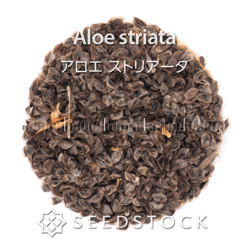 - 成長した株の特徴: 小型で茎のないアロエで、海岸地域やカルーエリアの岩が多い斜面で見つけることができます。種小名ストリアータは「ストライプ」を意味し、その青緑色の葉に見られる長い線(時には非常に淡い)を指しています。また、このアロエの葉には歯がなく、滑らかなピンク色の縁があります。これもストリアータ固有の特徴の1つです。