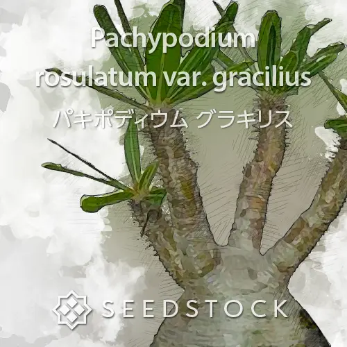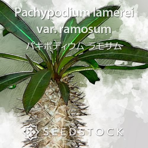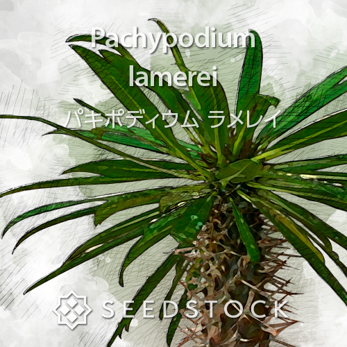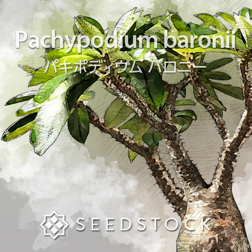 パキポディウムはマダガスカル原産の根塊植物です。キョウチクトウ科に分類されます。ほとんどの品種で成長が遅く、大きな株にするには長い年月を必要とします。それゆえ成長した株は高額で取引されています。基本的に雌雄同体で自家受粉により採種することが可能です。